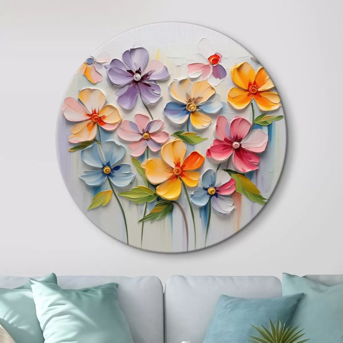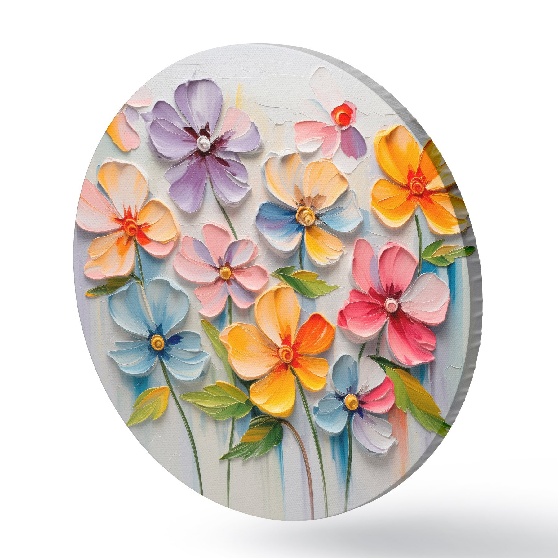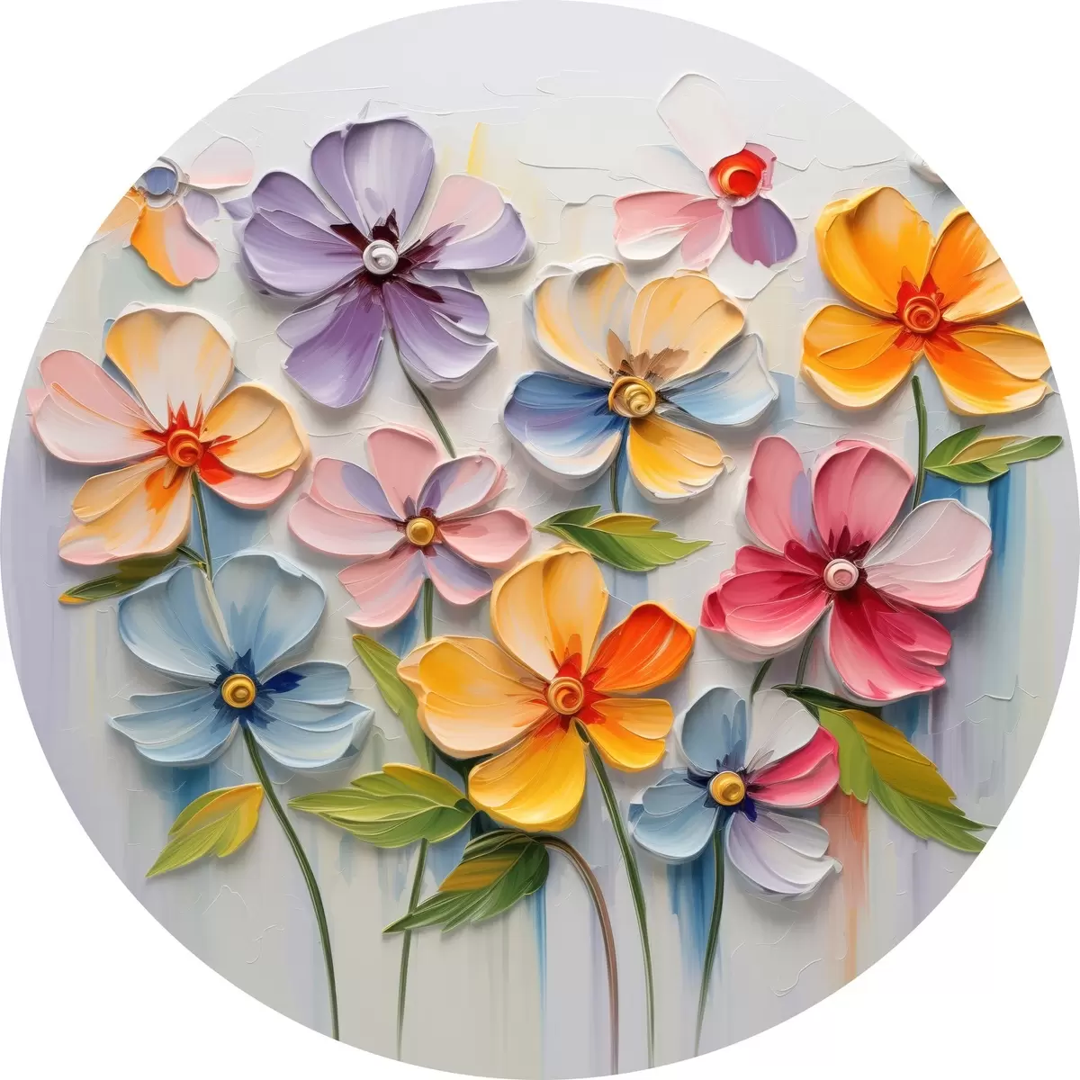 Picturi rotunde Natură statică florală: flori multicolore în tehnica impasto r45598