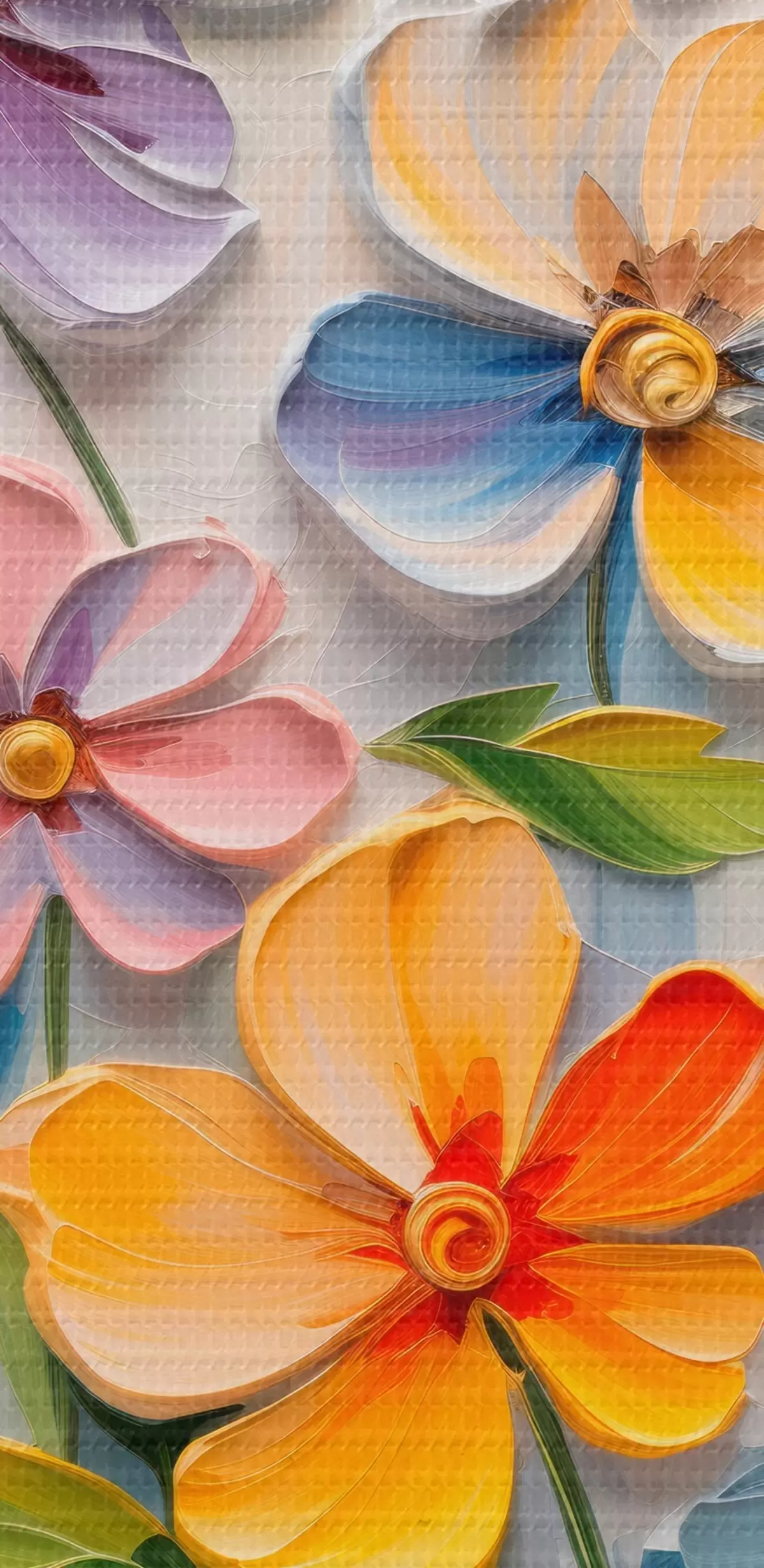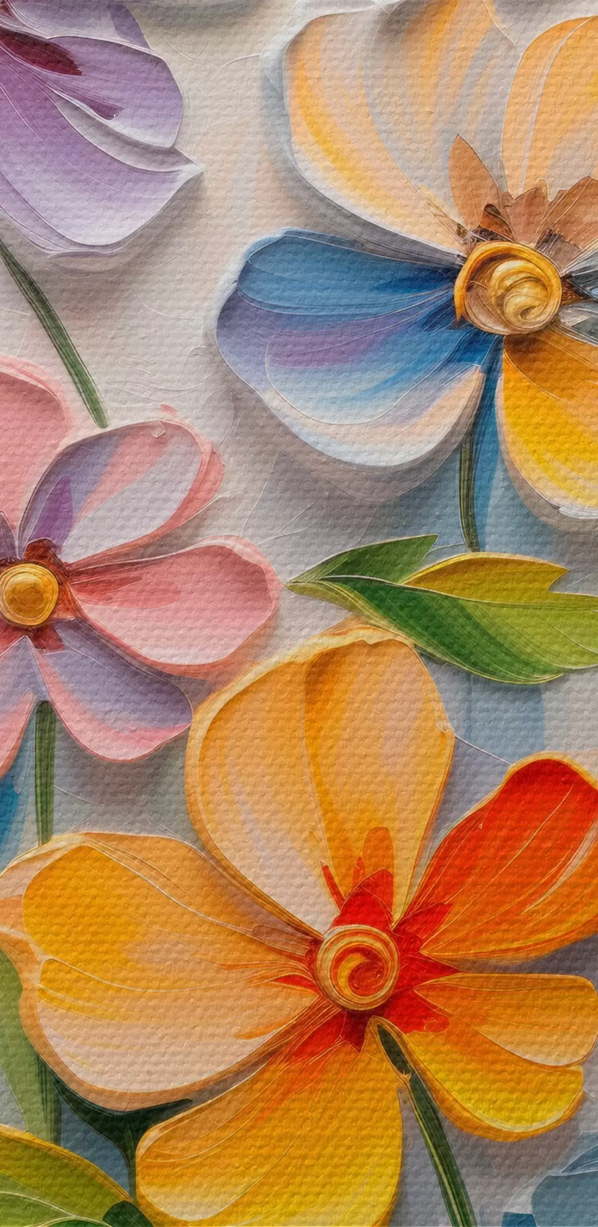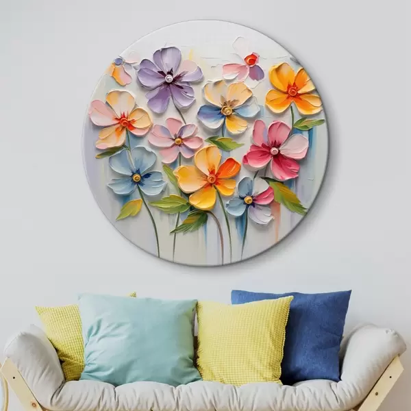 Picturi rotunde Natură statică florală: flori multicolore în tehnica impasto r45598