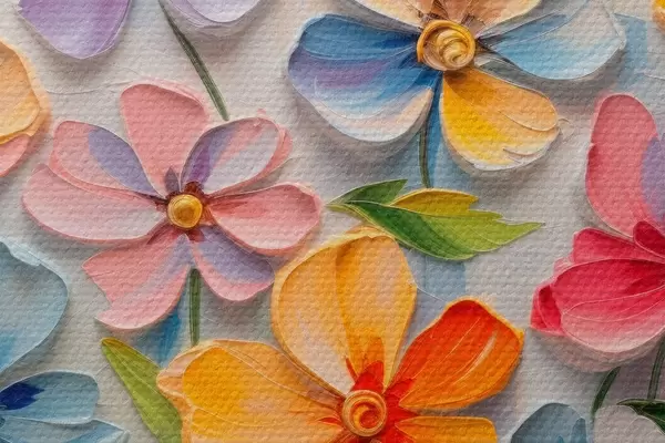 Picturi rotunde Natură statică florală: flori multicolore în tehnica impasto r45598