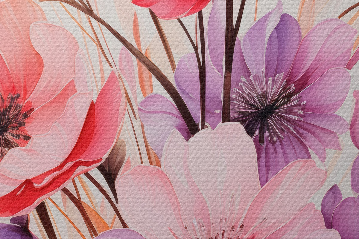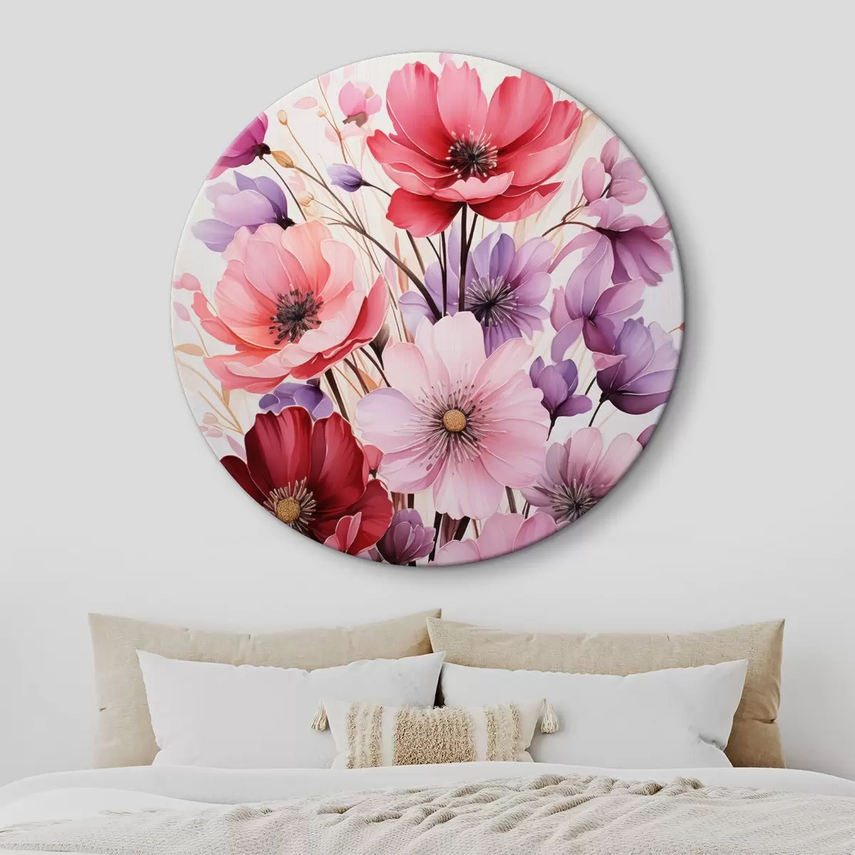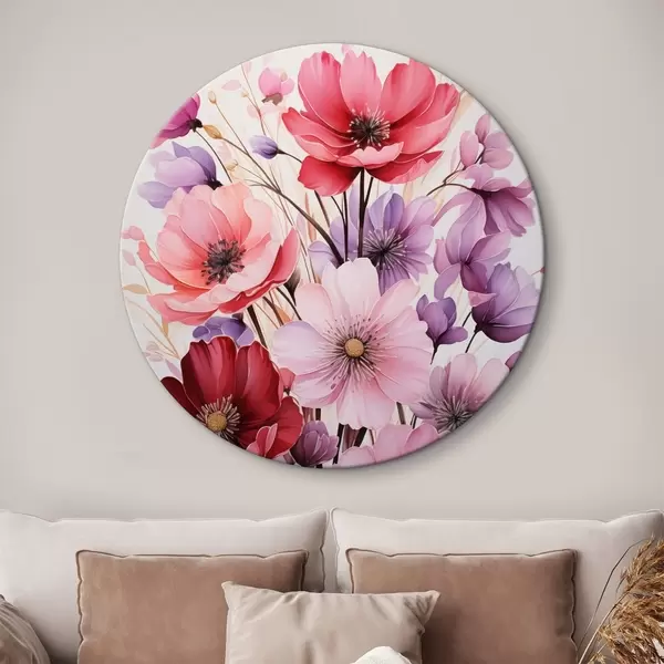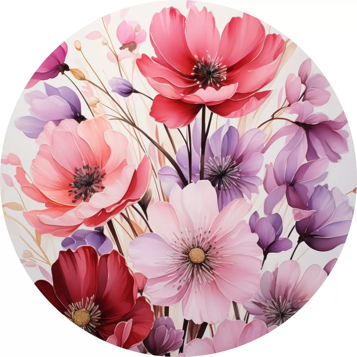 Picturi rotunde Buchet delicat de maci roz și liliac pe un fundal ușor, stil acuarelă Nr r45601