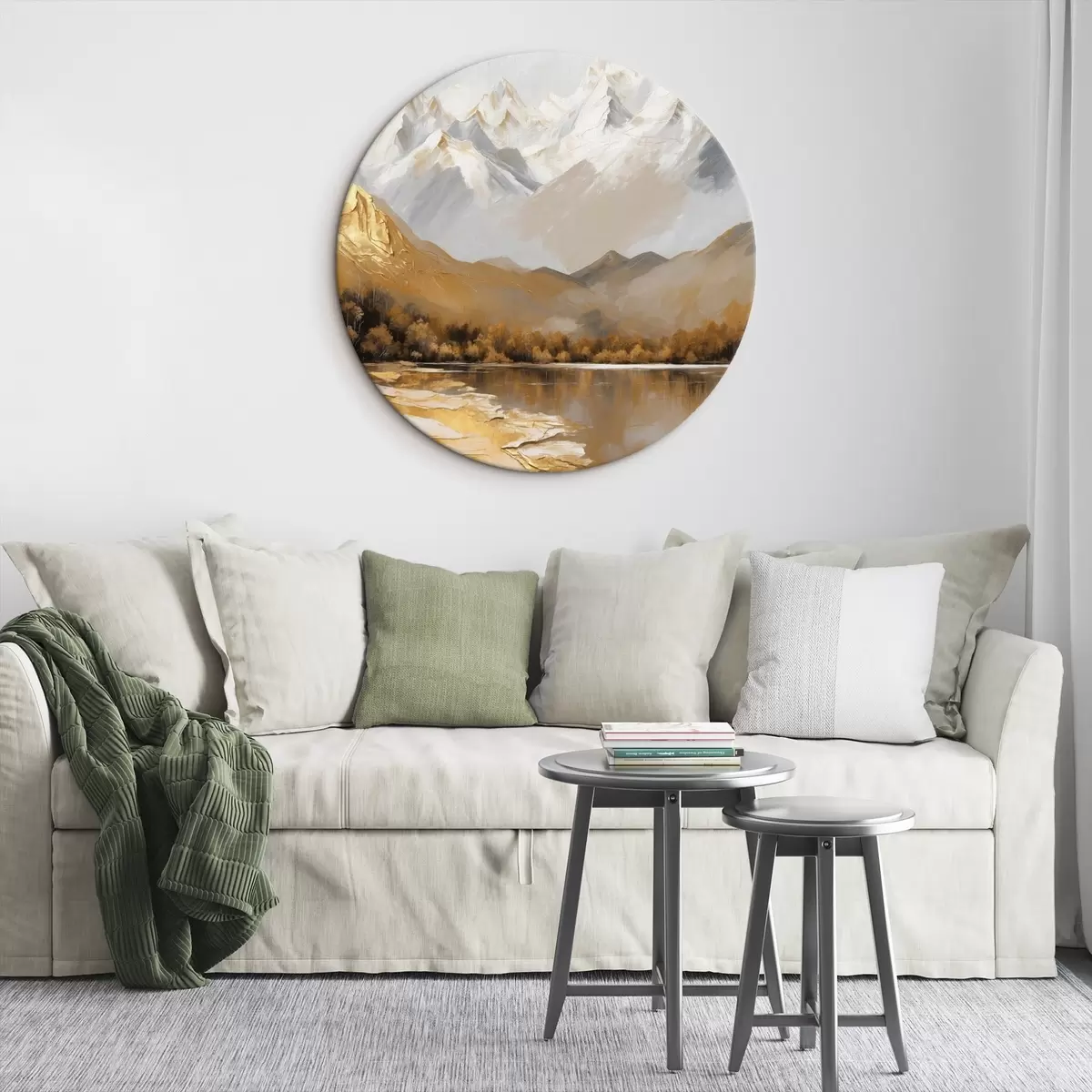 Picturi rotunde Peisaj montan cu un lac și copaci r45620