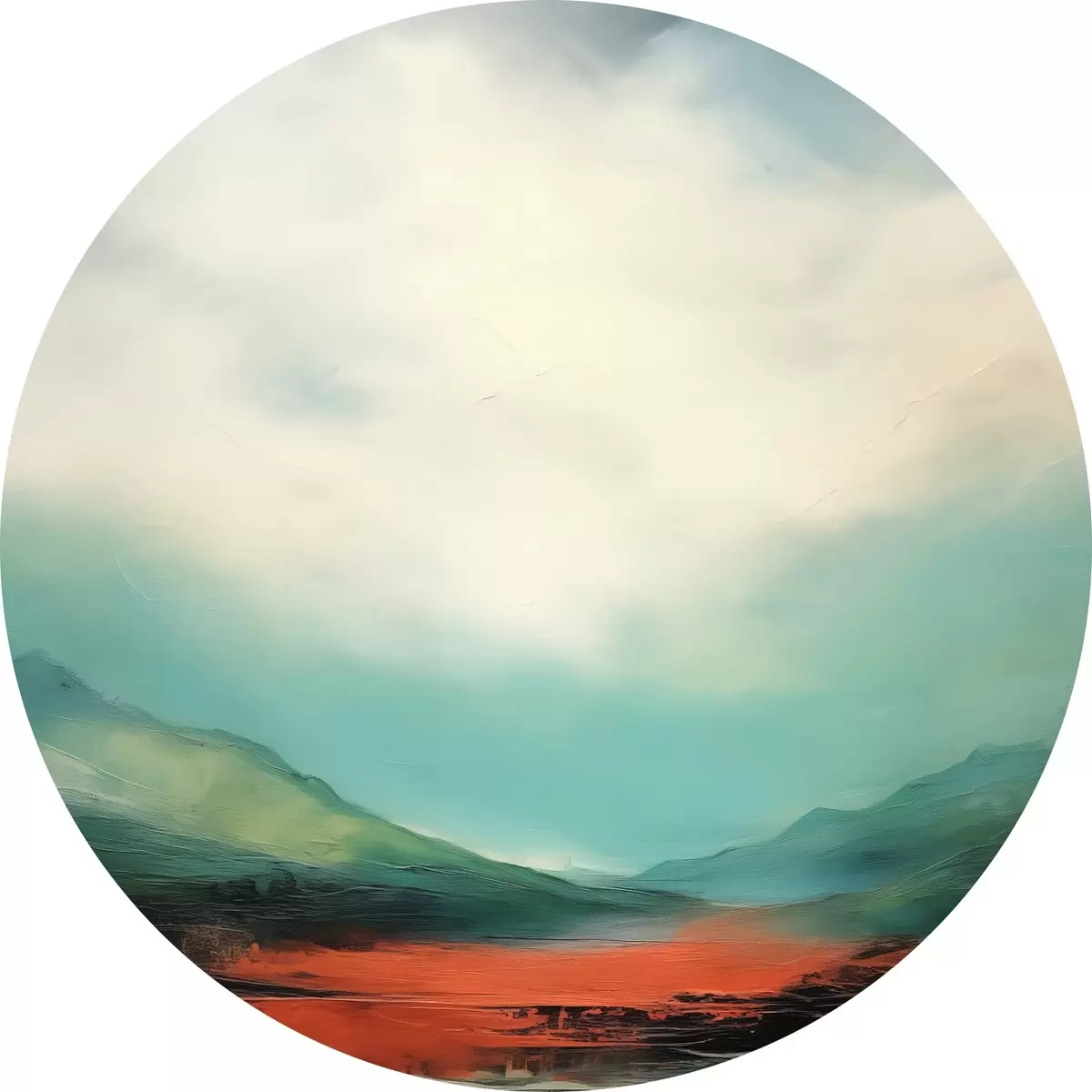 Picturi rotunde Peisaj luminos cu nori și munți Nr r45626