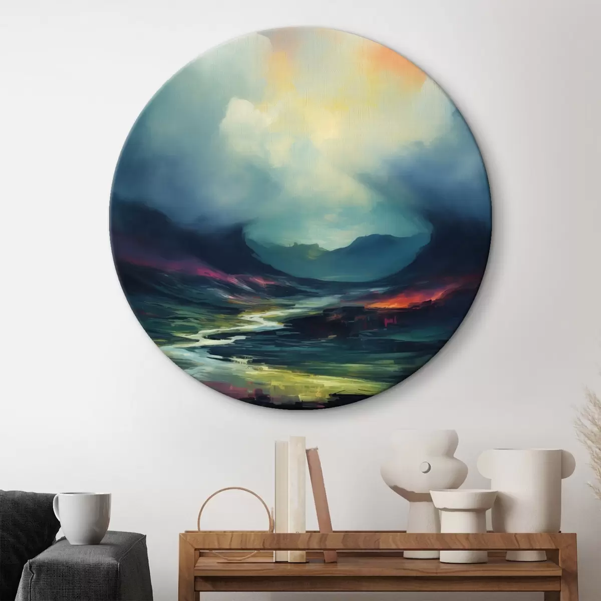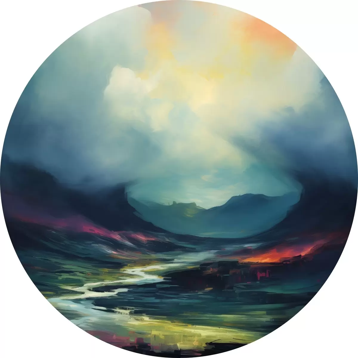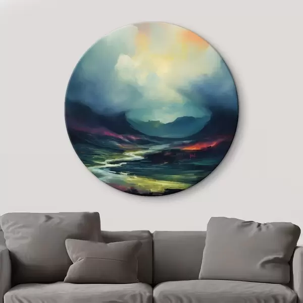 Picturi rotunde Peisaj abstract cu un râu și munți r45627