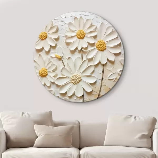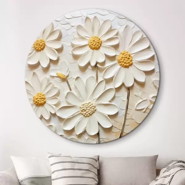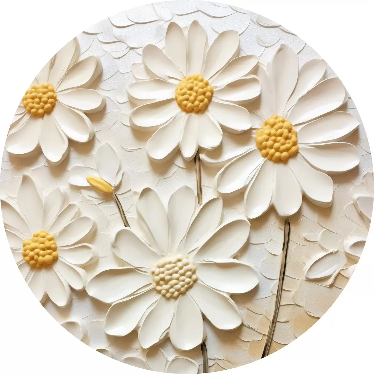 Picturi rotunde Margarete în stil impasto: petale albe Nr r45647