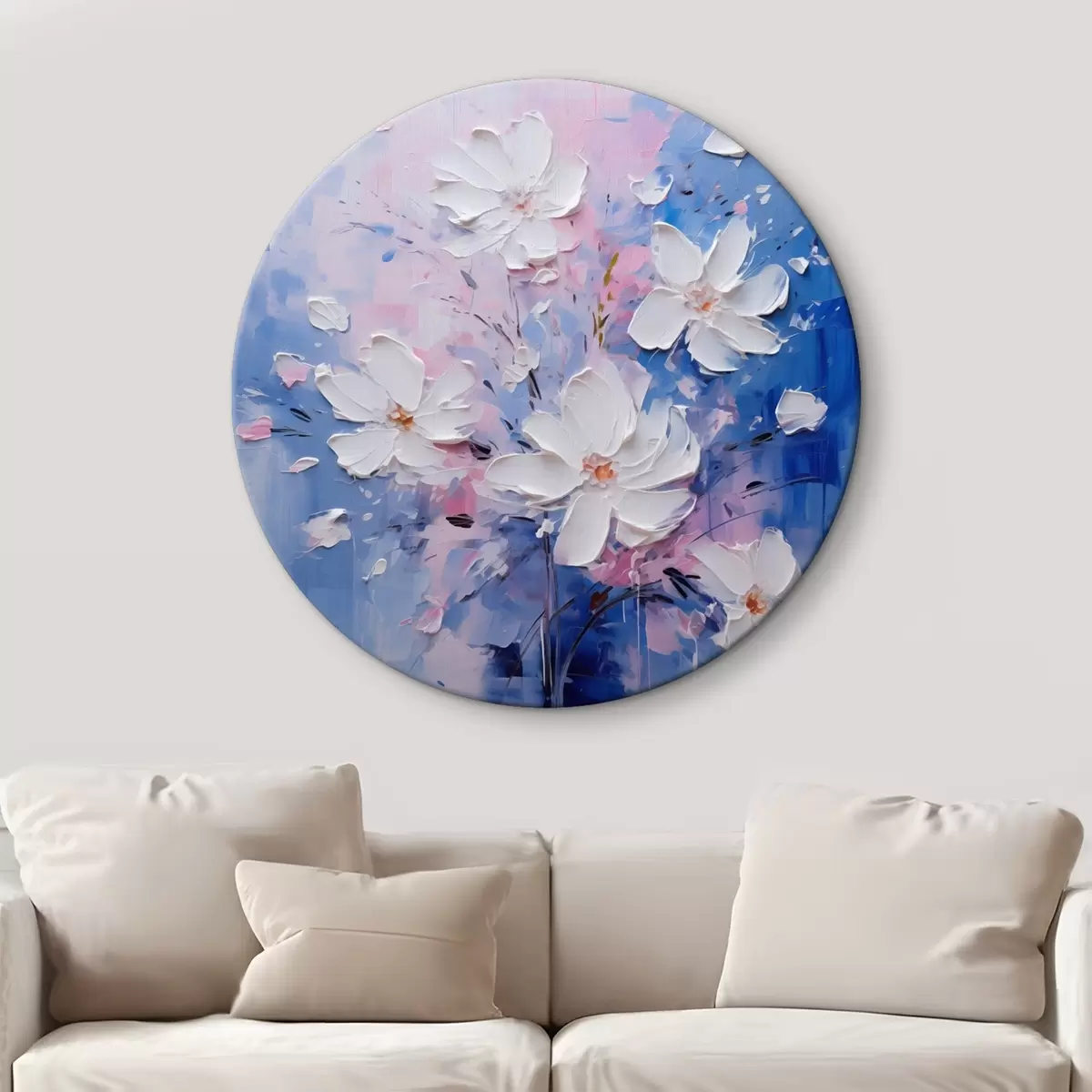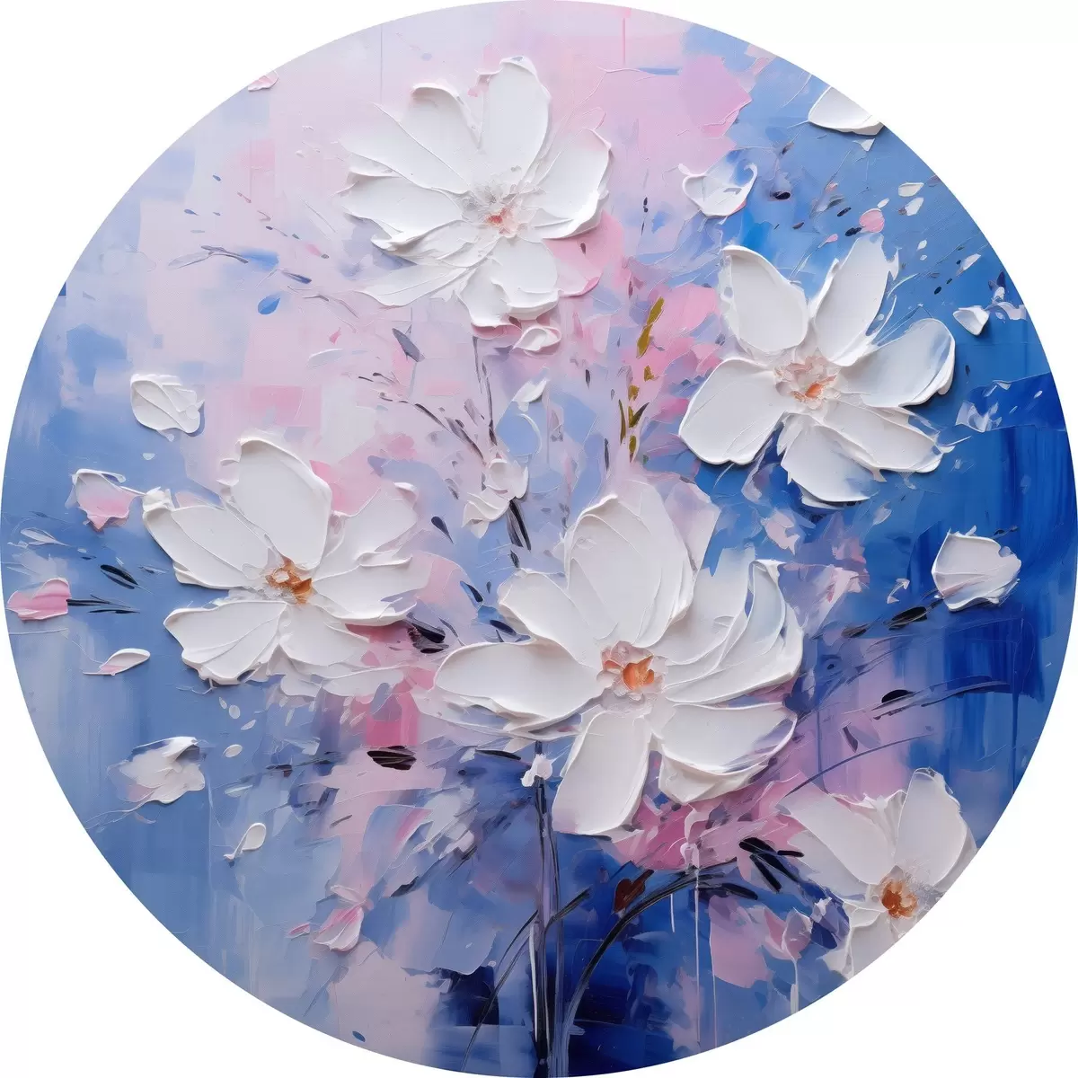 Picturi rotunde Flori volumetrice pe un fundal albastru în stil impasto r45648