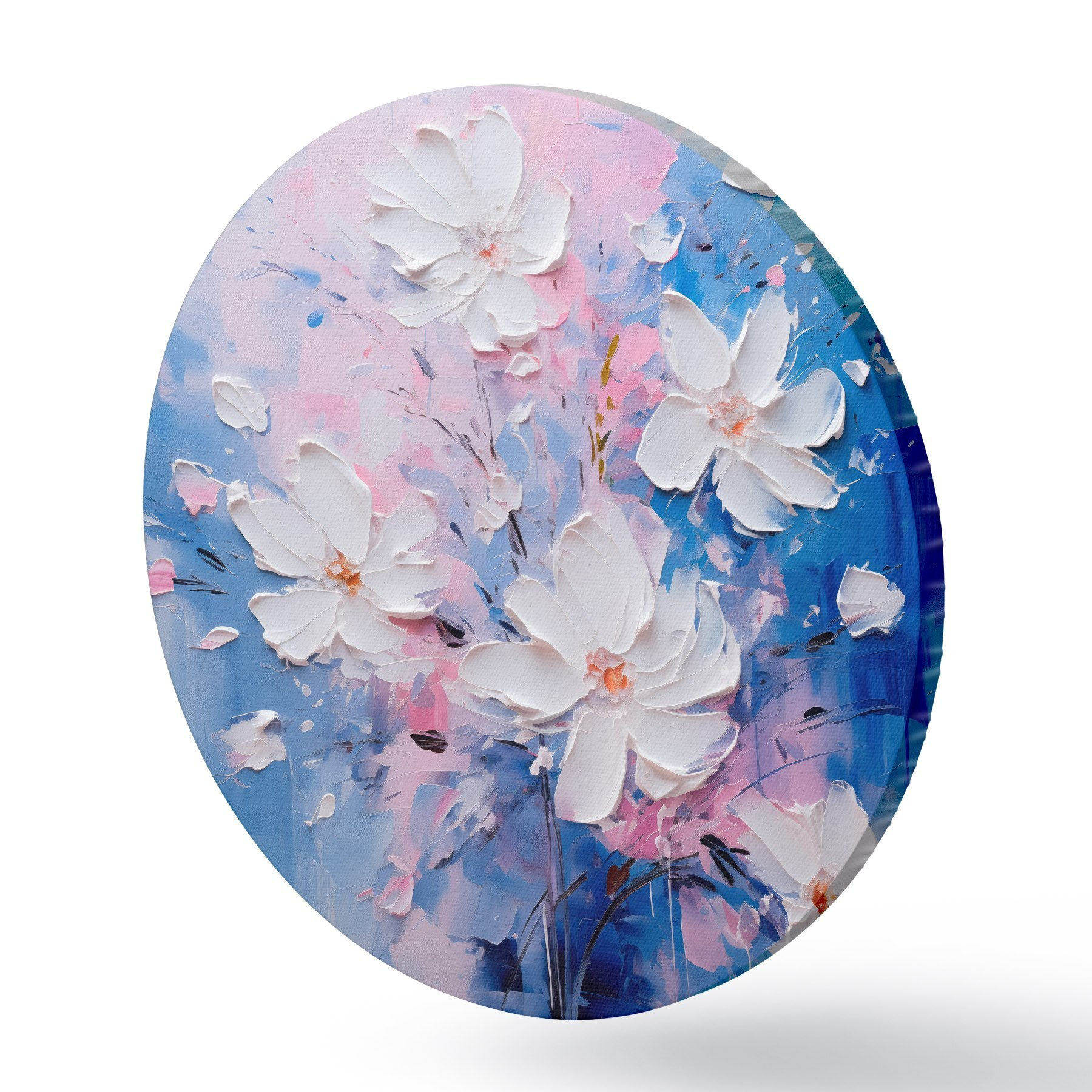 Picturi rotunde Flori volumetrice pe un fundal albastru în stil impasto Nr r45648