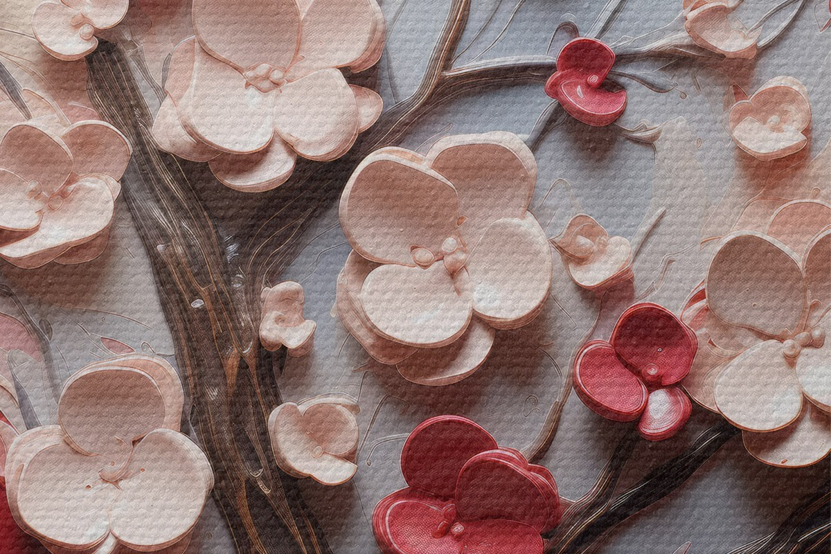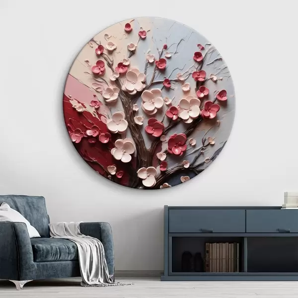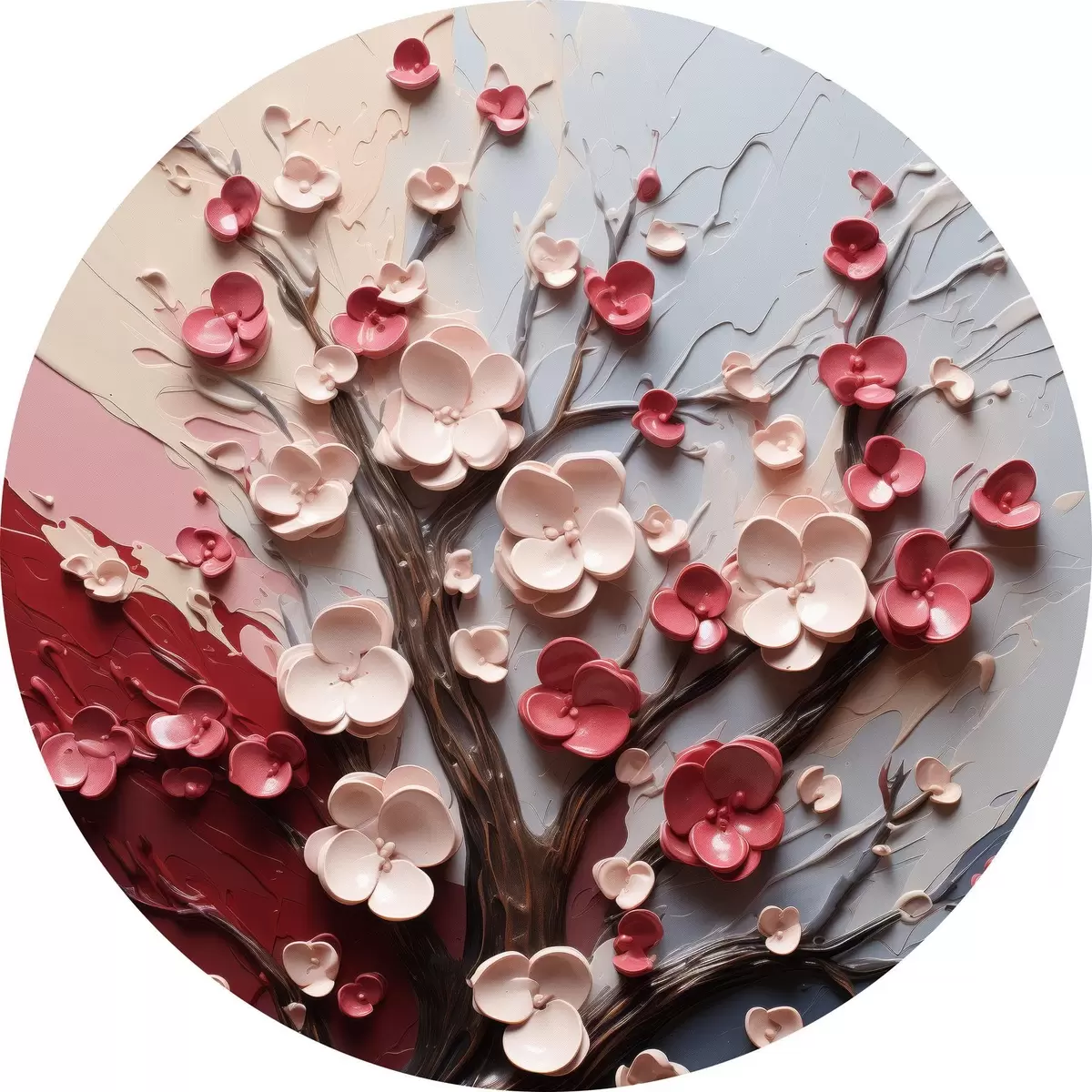 Picturi rotunde Volumetric sakura în stil de pictură texturată r45650