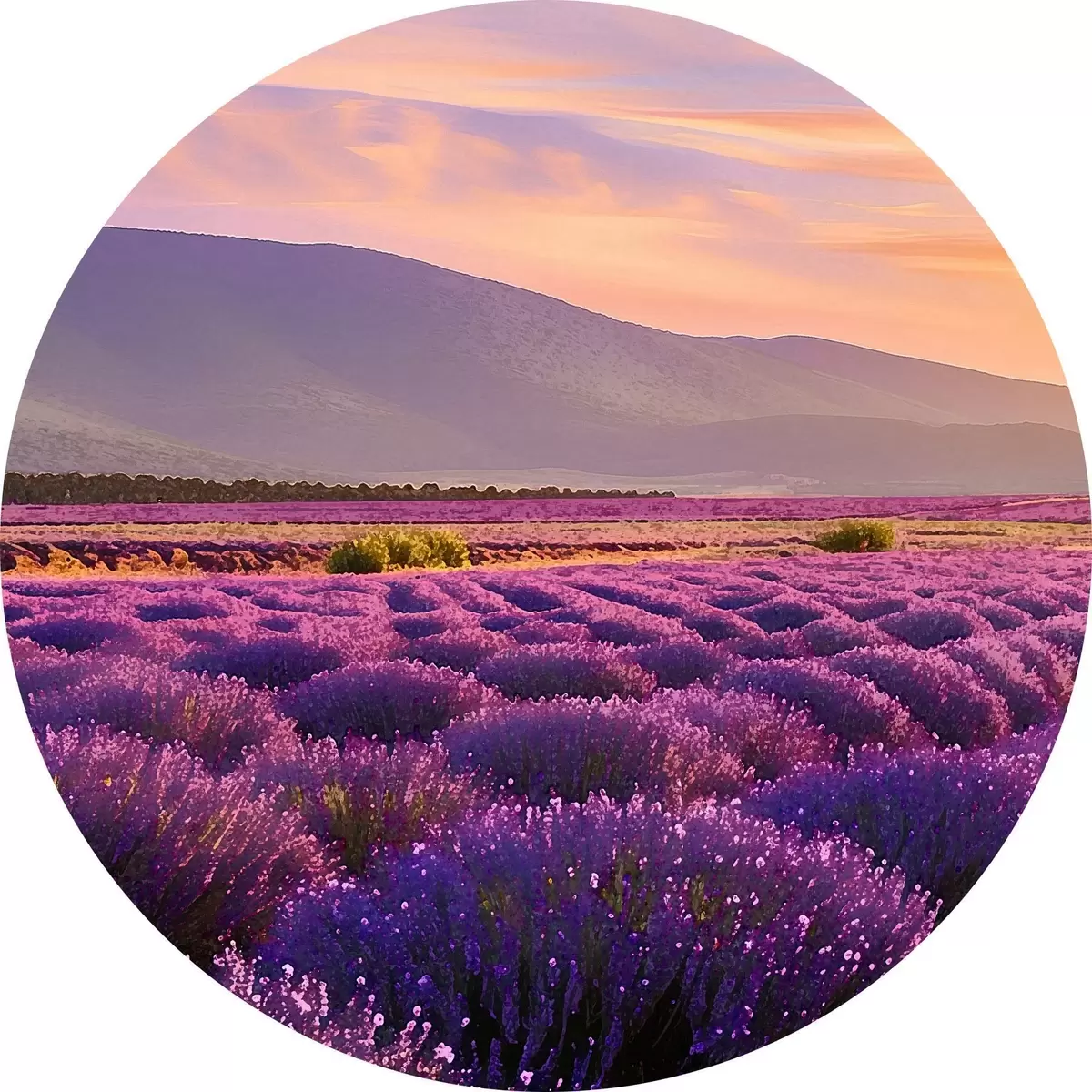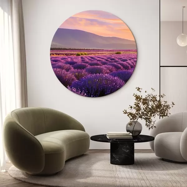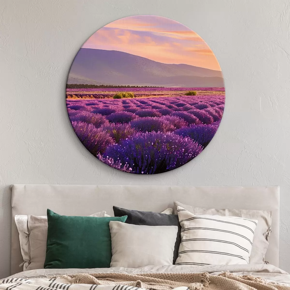 Picturi rotunde Câmpuri de lavandă pe fundalul munților Nr r45662