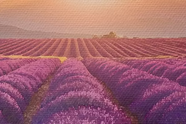 Picturi rotunde Apus de soare într-un câmp de lavandă Nr r45663