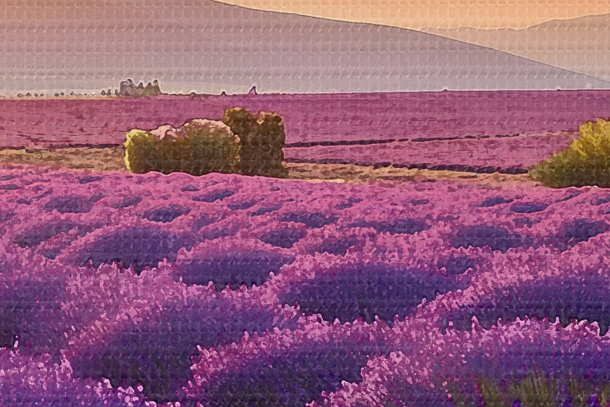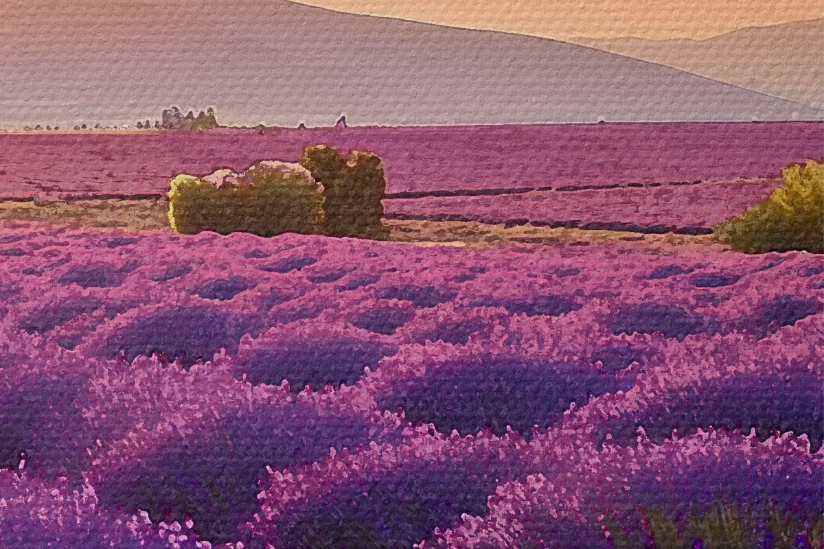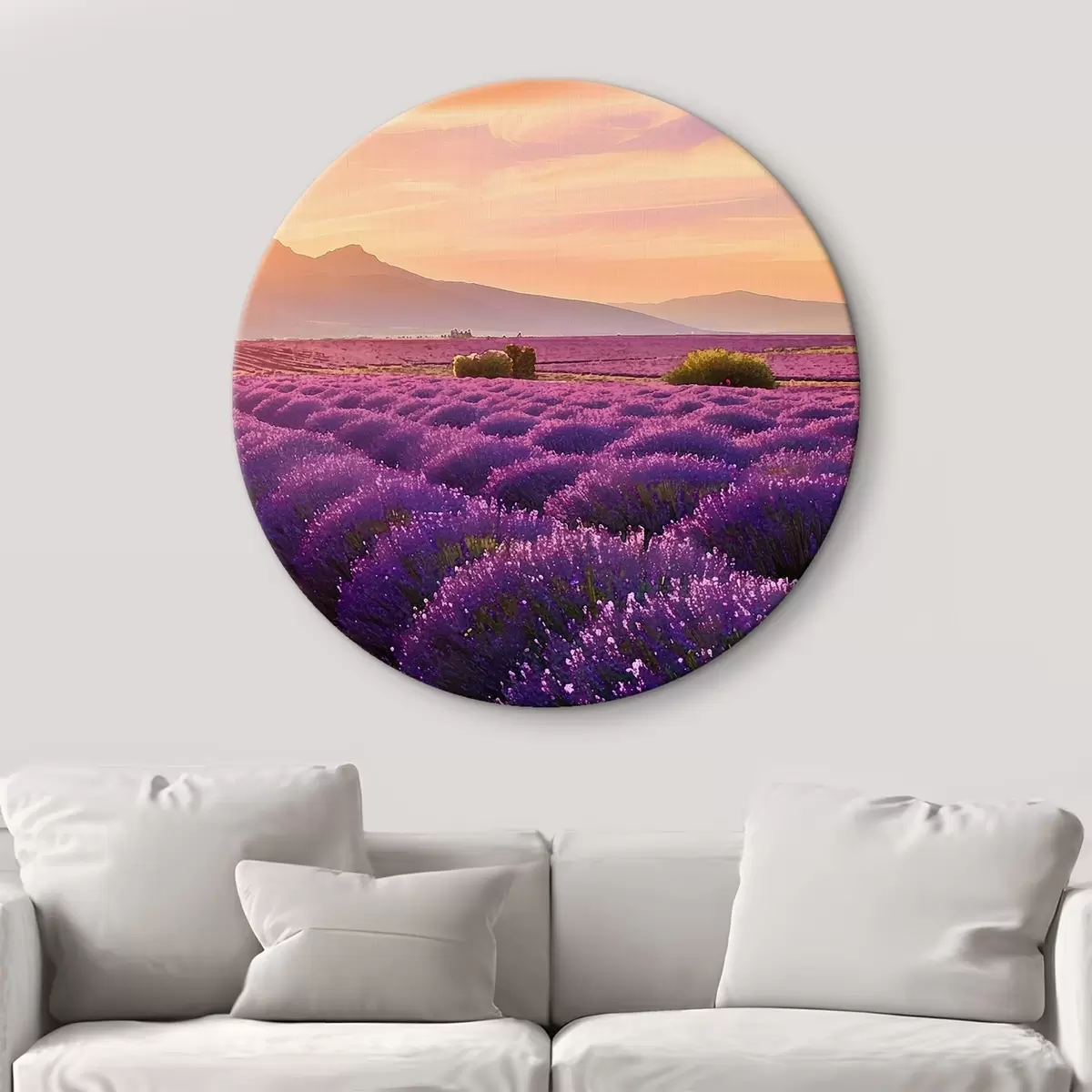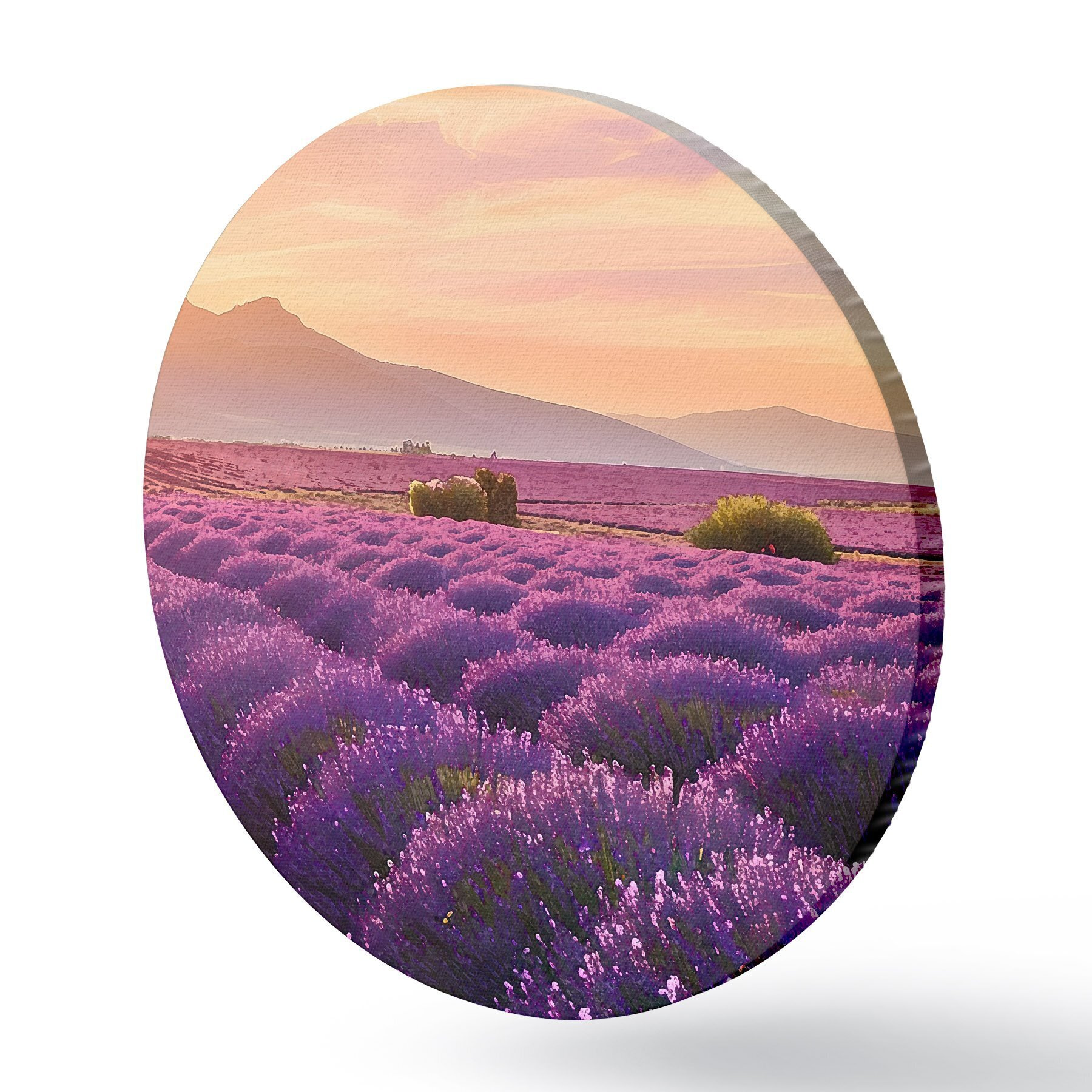 Picturi rotunde Lavandă pe fundalul unui apus de soare în munți Nr r45664