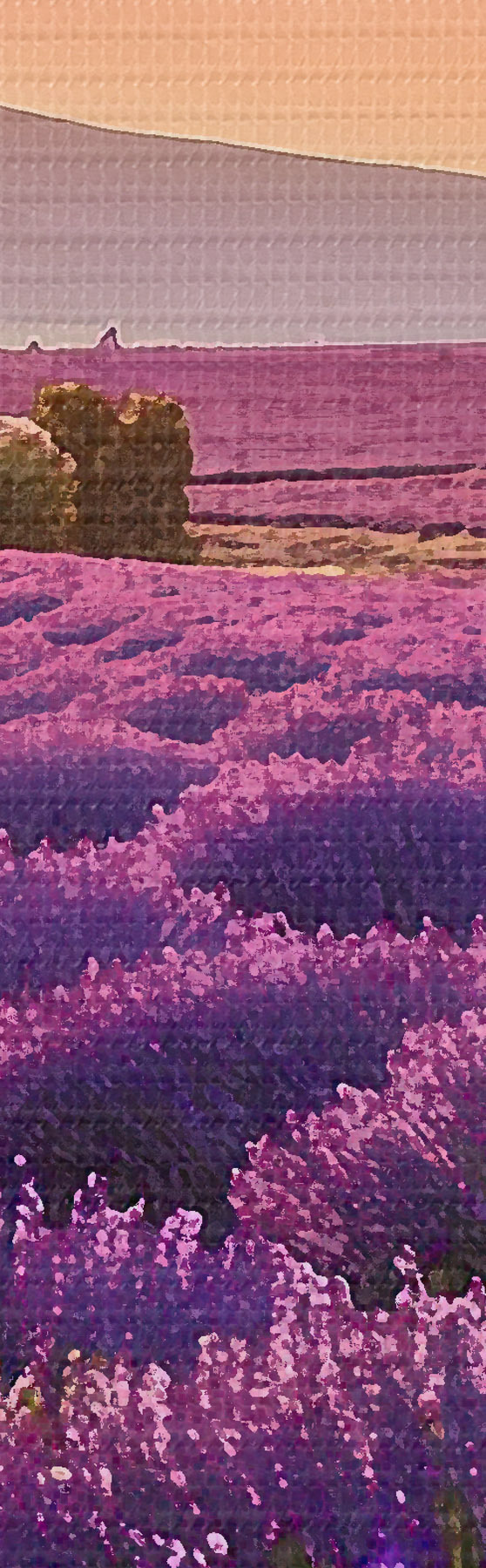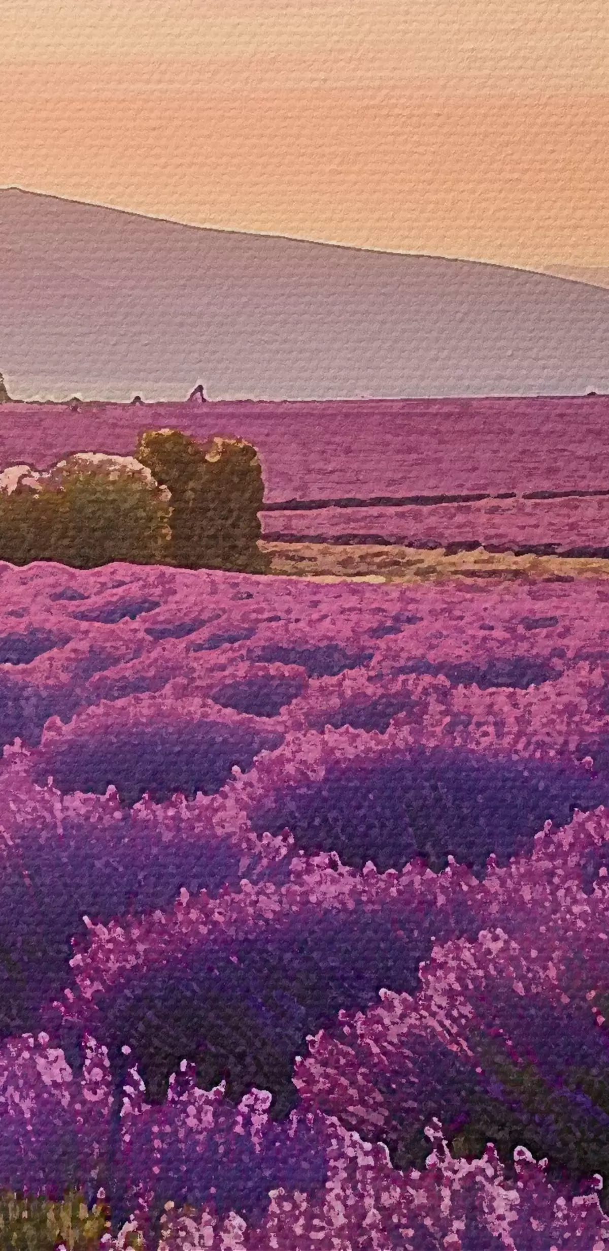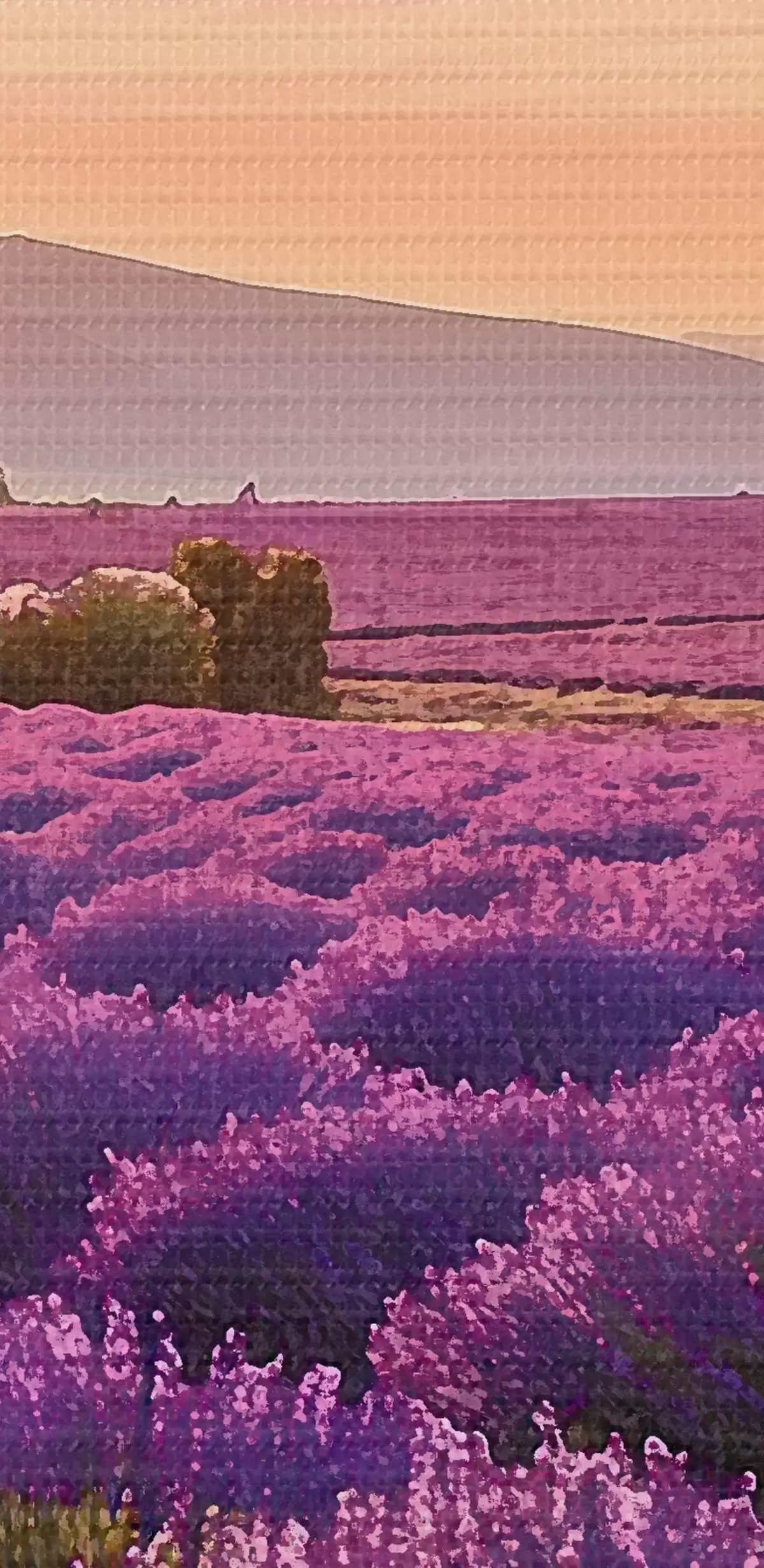 Picturi rotunde Lavandă pe fundalul unui apus de soare în munți Nr r45664