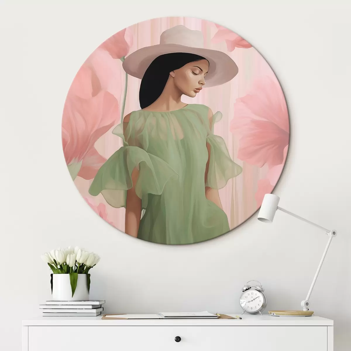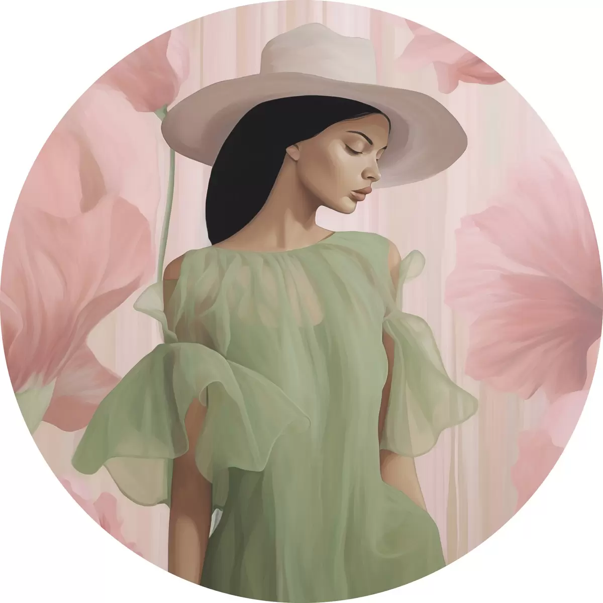 Picturi rotunde Fată cu pălărie printre flori r45678