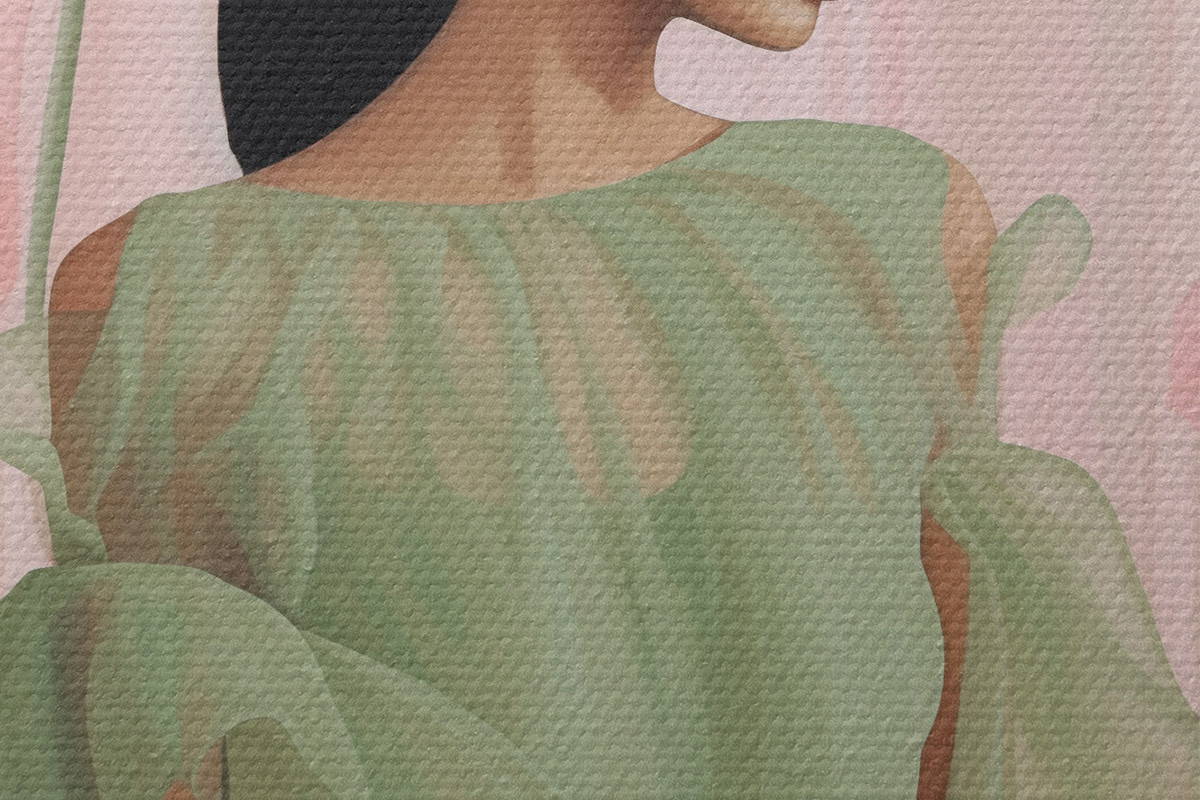 Țesătura fină a firelor de pe această pânză seamănă cu suprafața pânzelor artiștilor profesioniști.