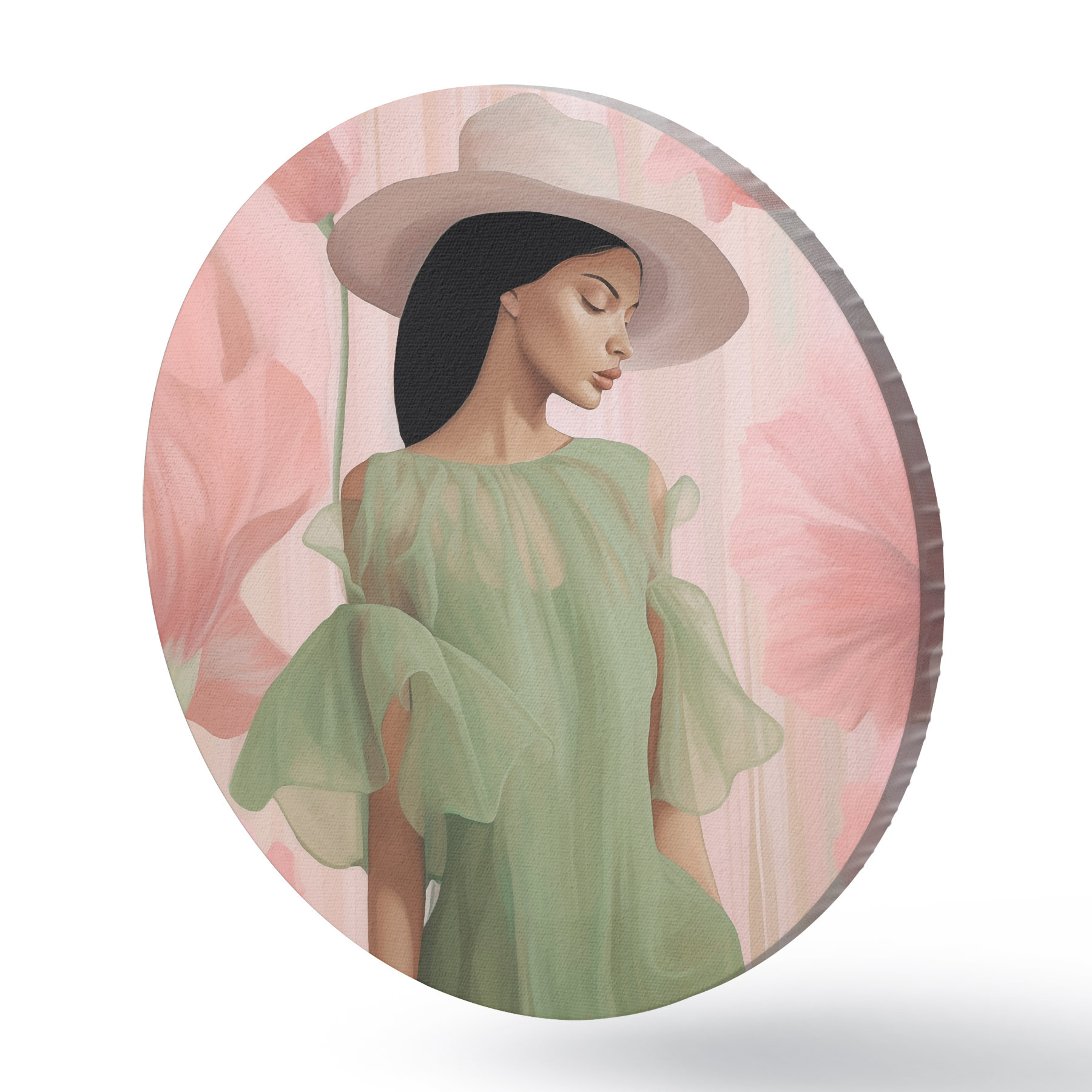 Picturi rotunde Fată cu pălărie printre flori Nr r45678