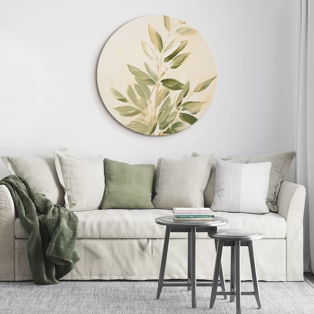 Picturi rotunde Creangă cu frunze verzi pe un fundal bej deschis Nr r45689