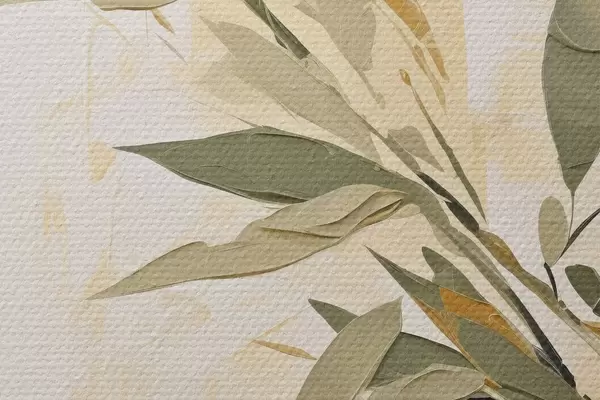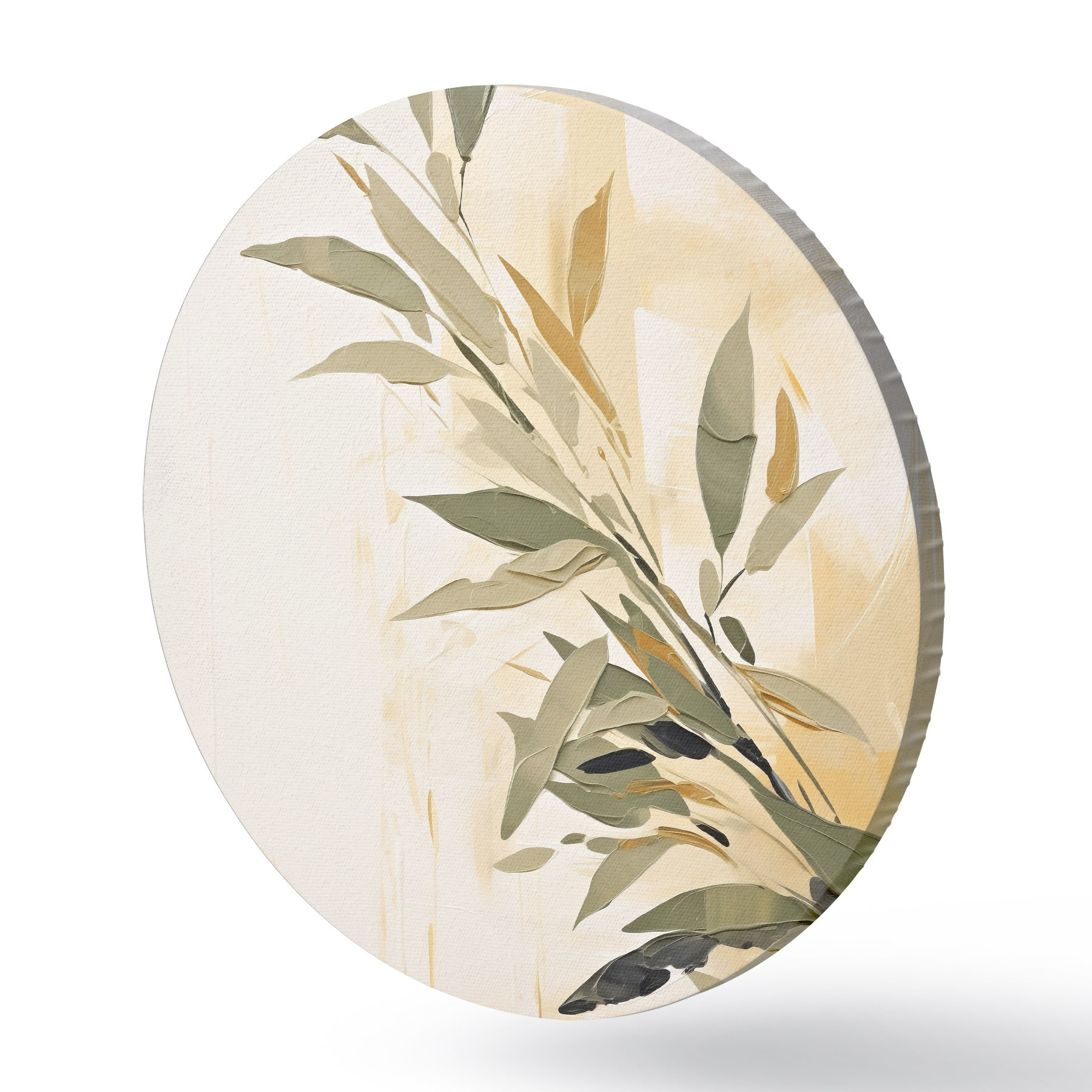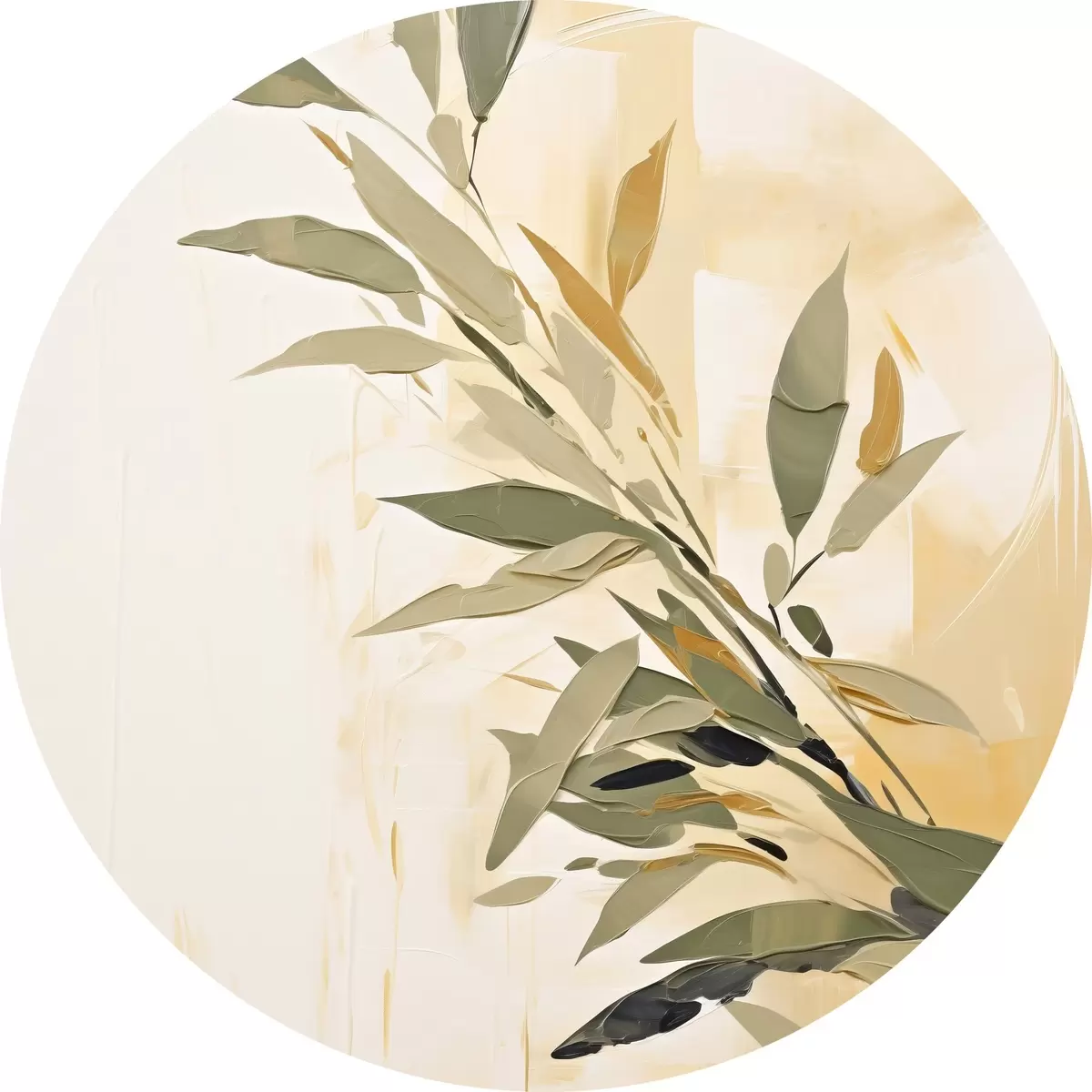 Picturi rotunde Ramură botanică cu frunze verzi pe un fundal cald Nr r45690