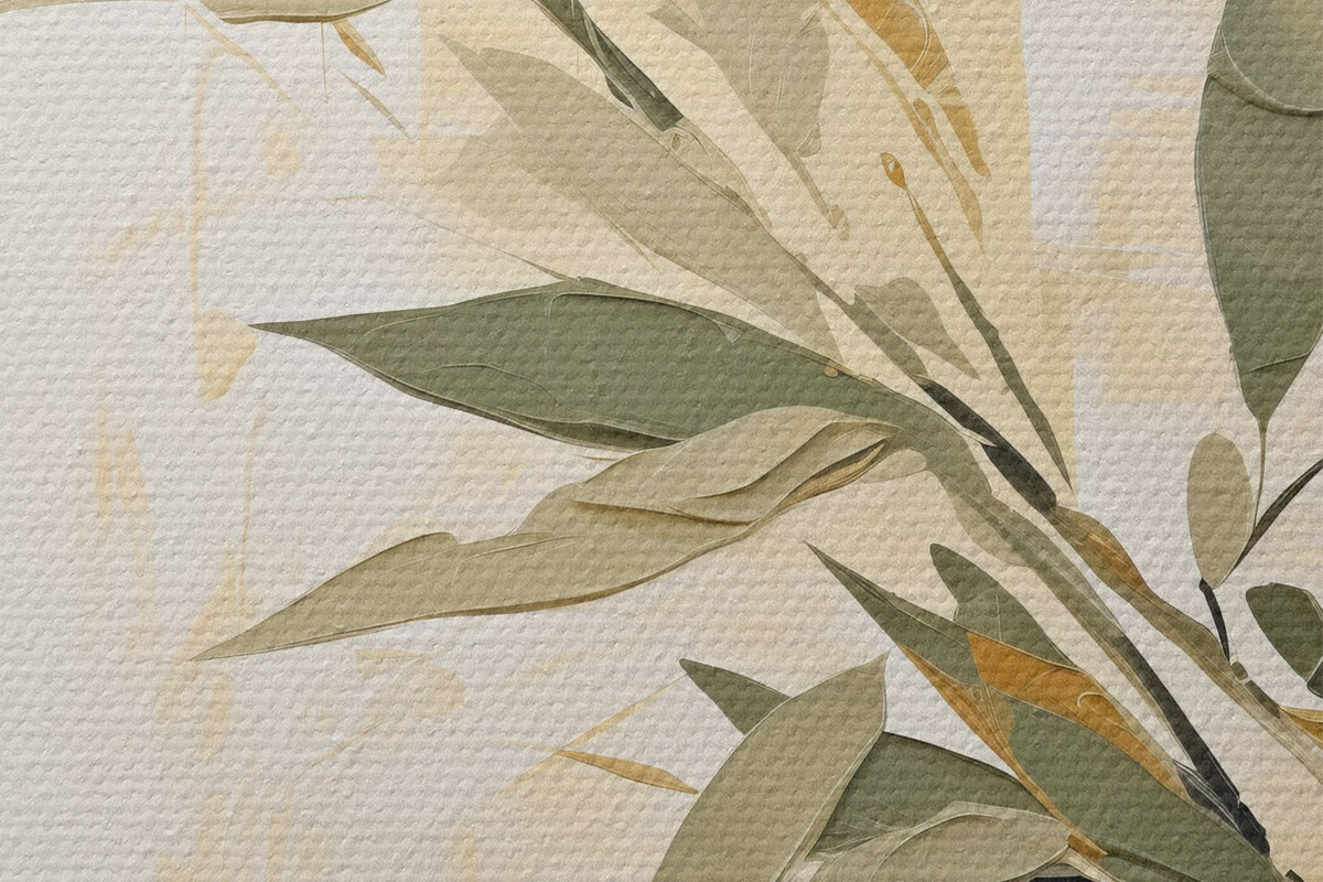Picturi rotunde Ramură botanică cu frunze verzi pe un fundal cald r45690