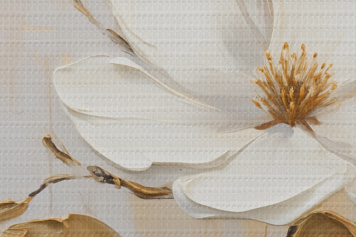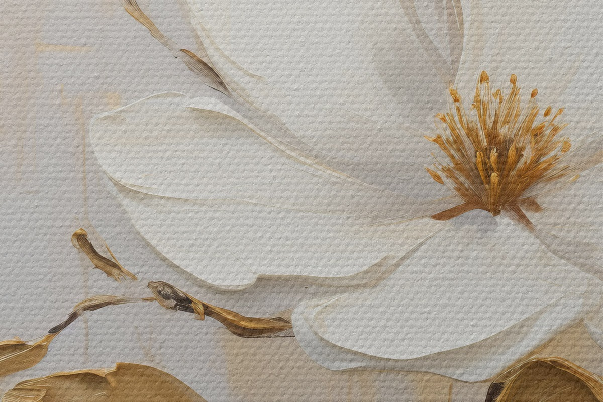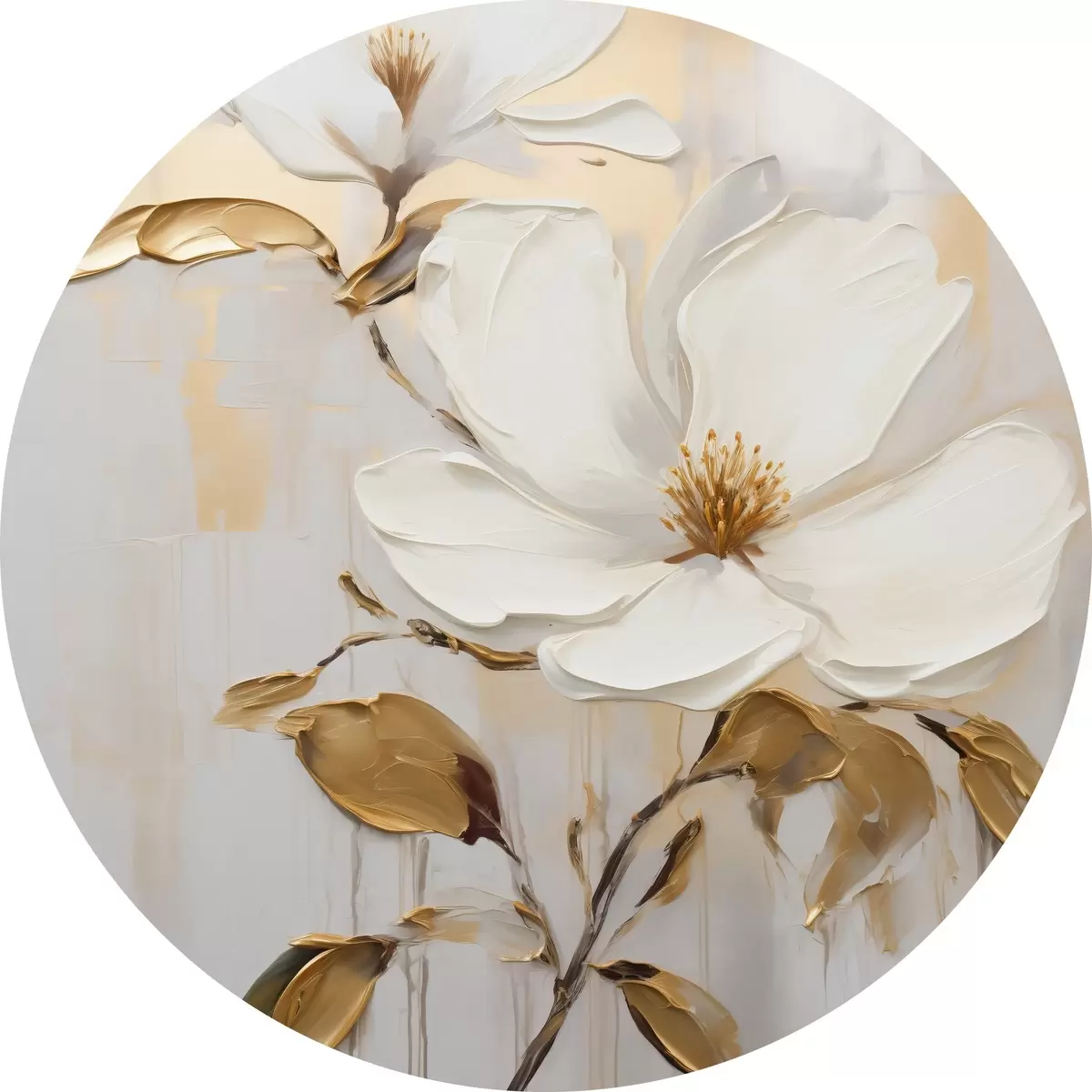 Picturi rotunde Două flori albe cu frunze galben-portocalii pe un fundal deschis Nr r45691