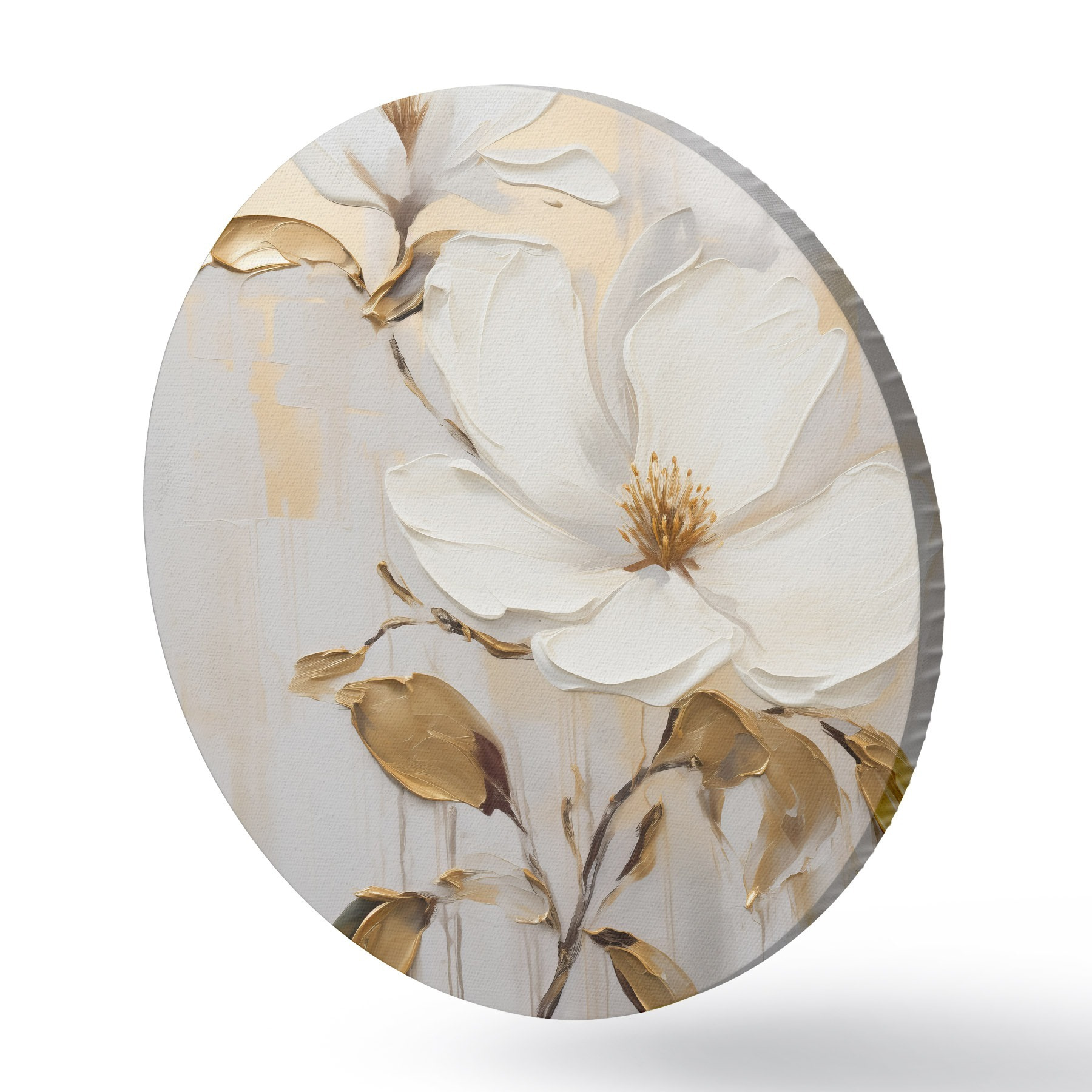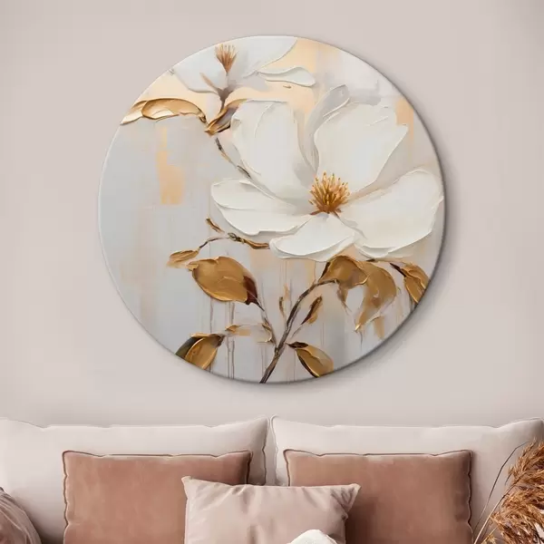 Picturi rotunde Două flori albe cu frunze galben-portocalii pe un fundal deschis r45691