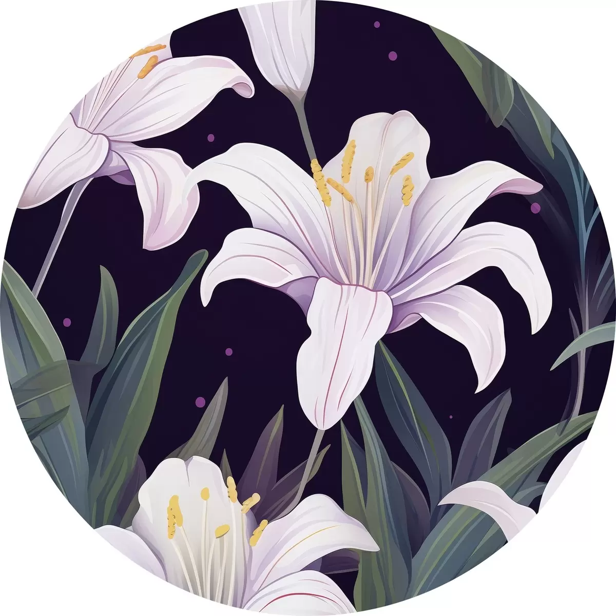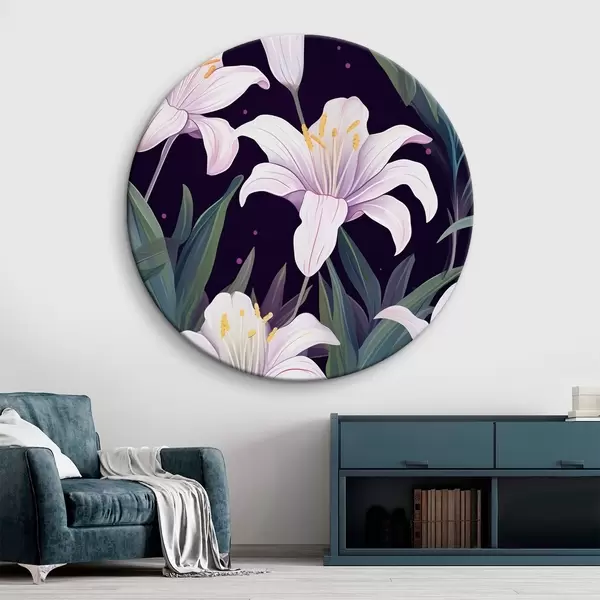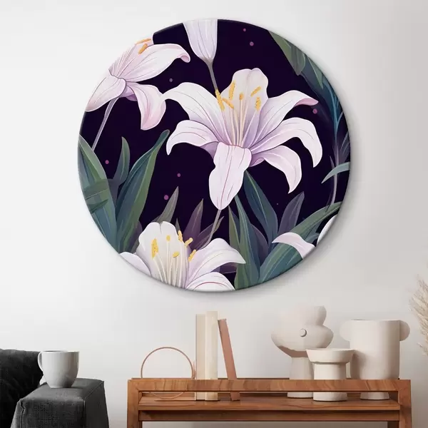 Picturi rotunde Crini delicați pe un fundal închis cu frunze verzi Nr r45697