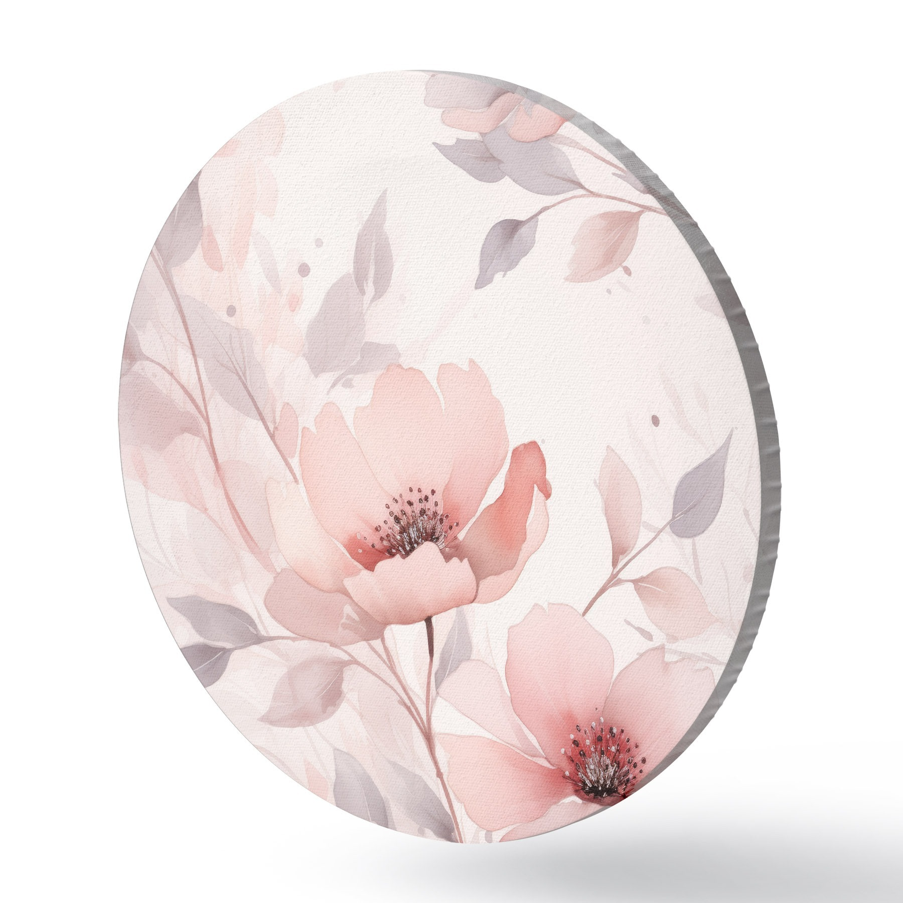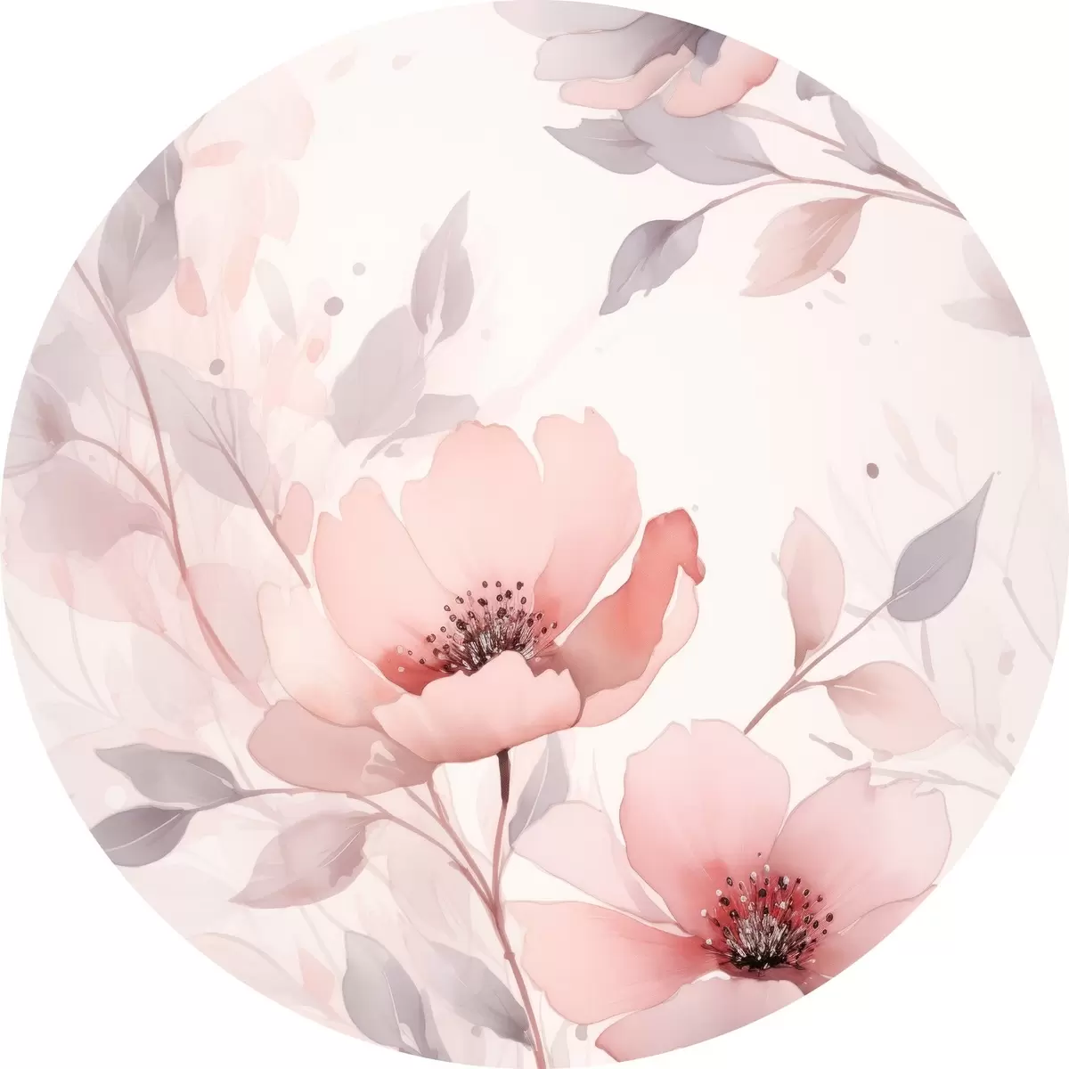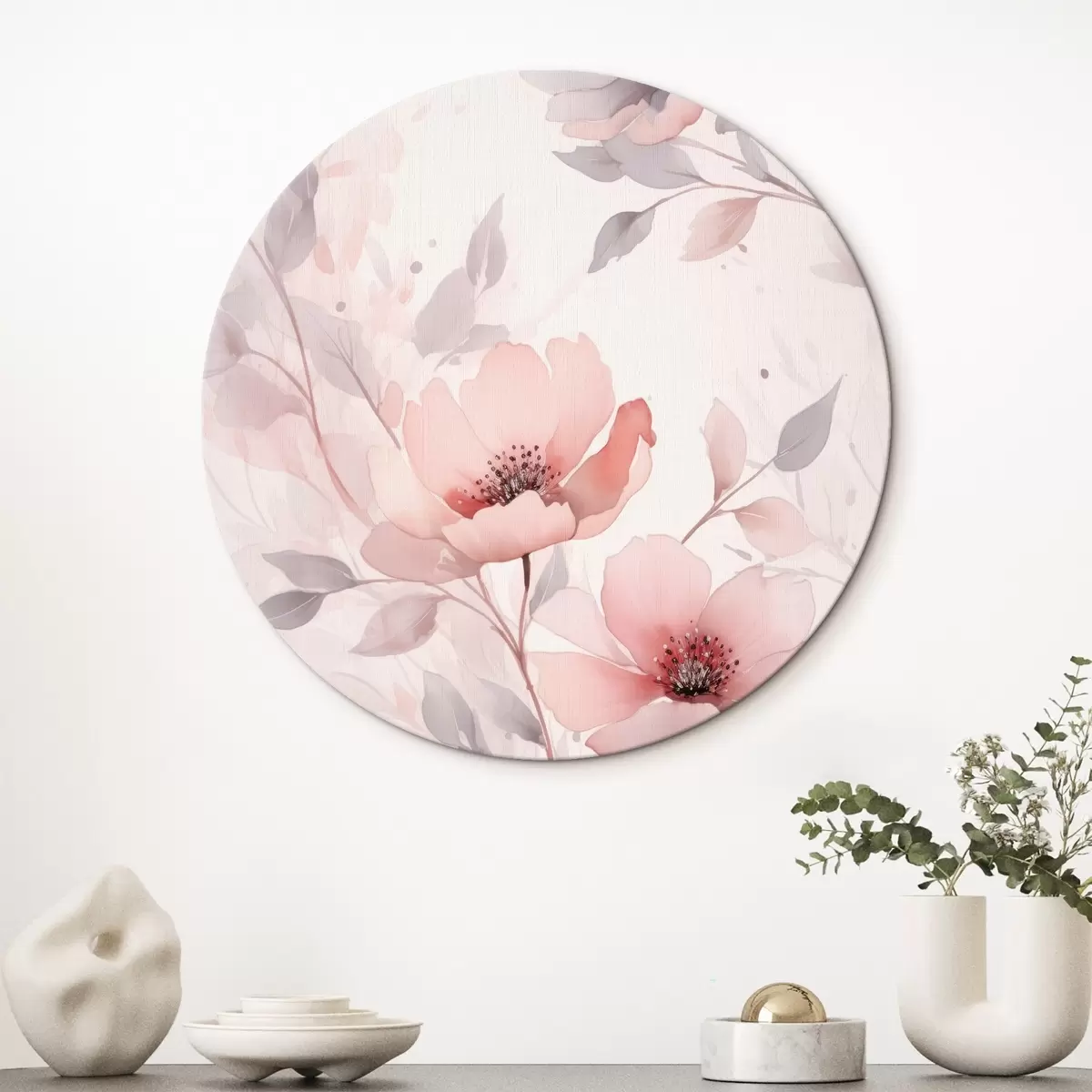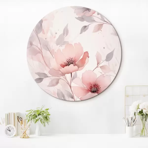 Picturi rotunde Flori delicate roz-cenușiu cu efect de acuarelă r45702