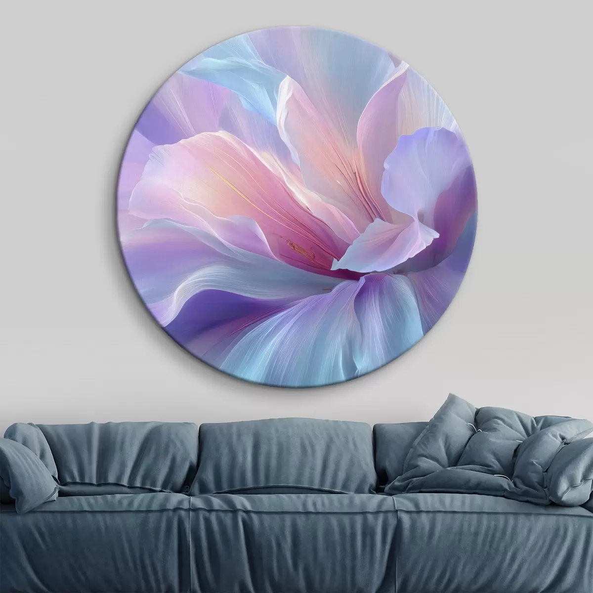 Picturi rotunde o floare delicată, de basm, cu petale în nuanțe de violet, albastru și roz Nr r45710