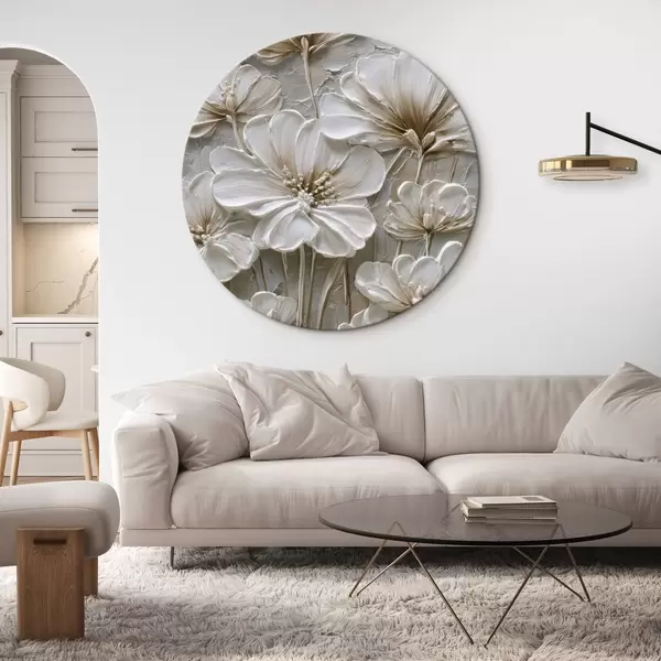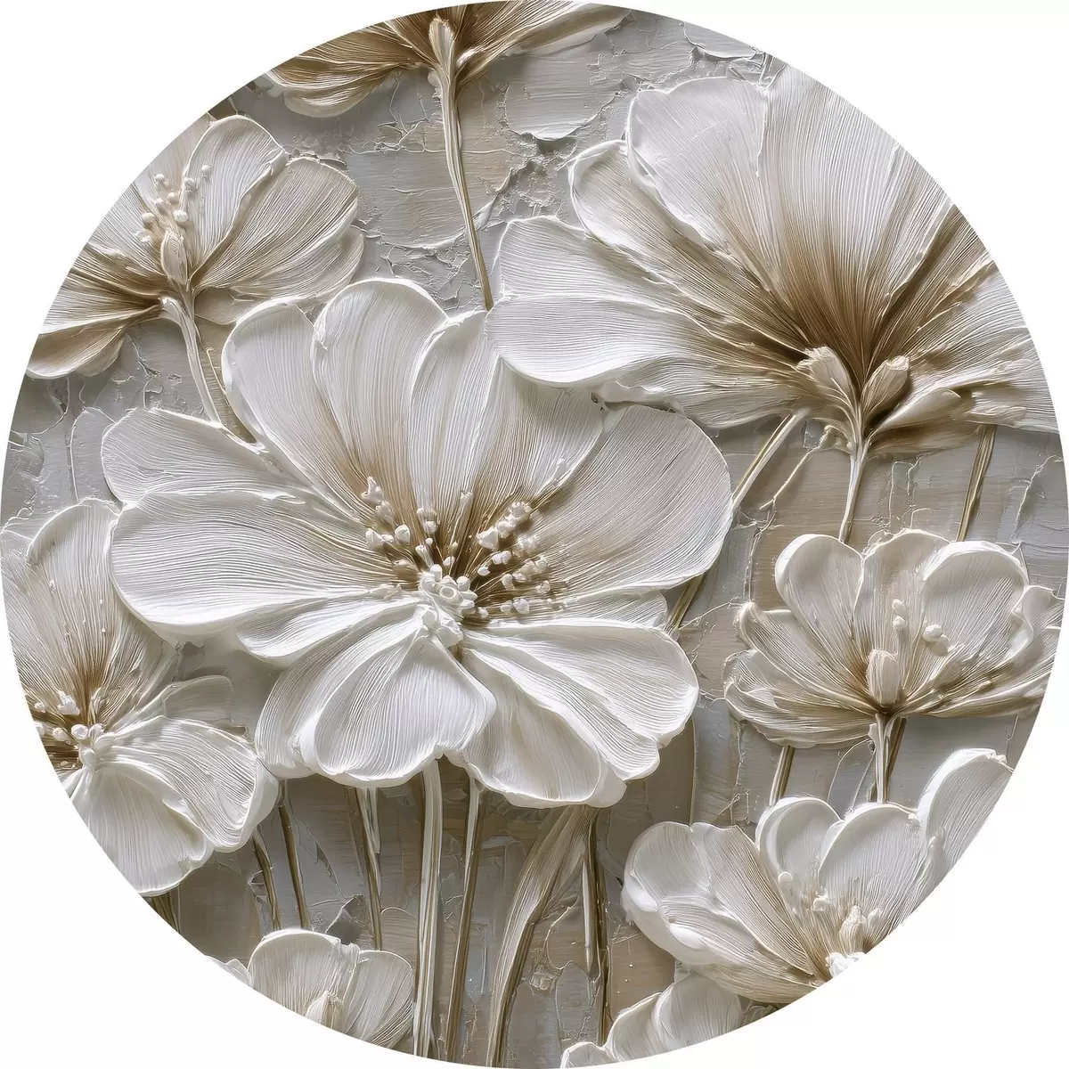 Picturi rotunde flori crem cu stil impasto imitație Nr r45712