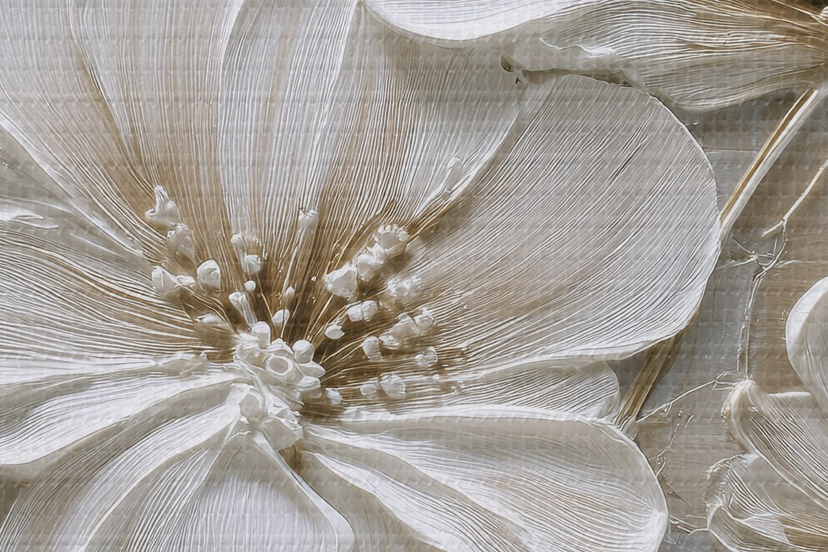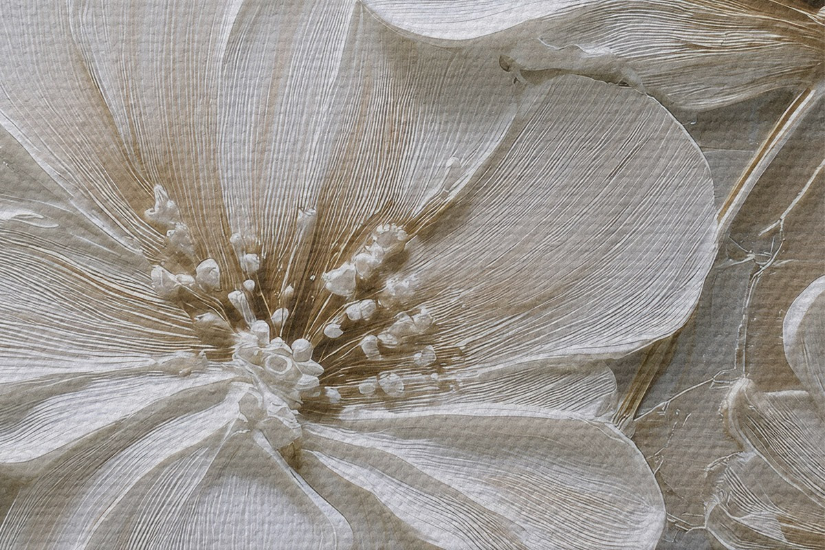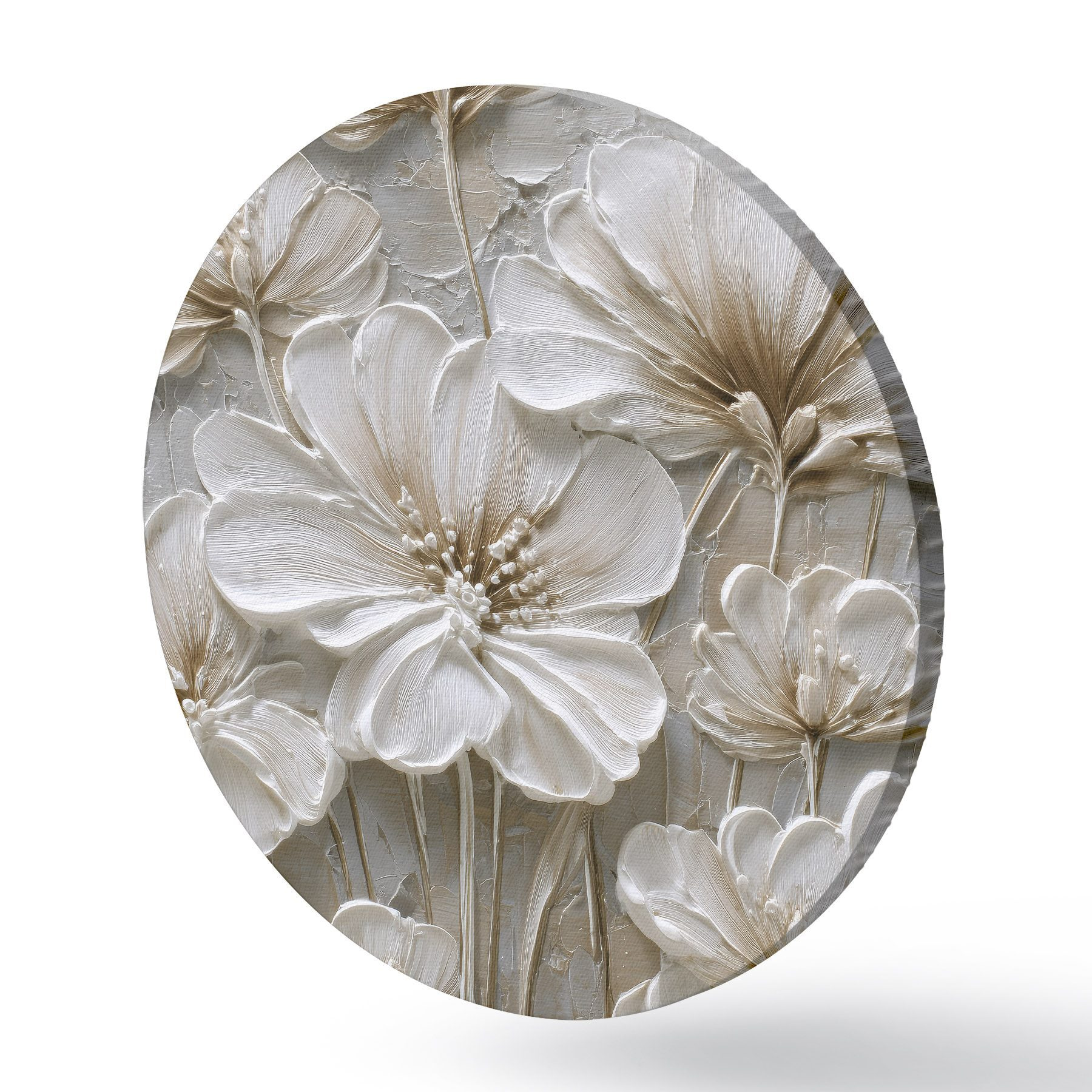 Picturi rotunde flori crem cu stil impasto imitație r45712