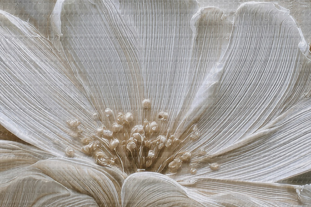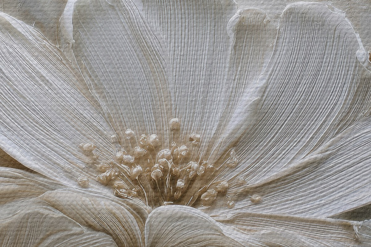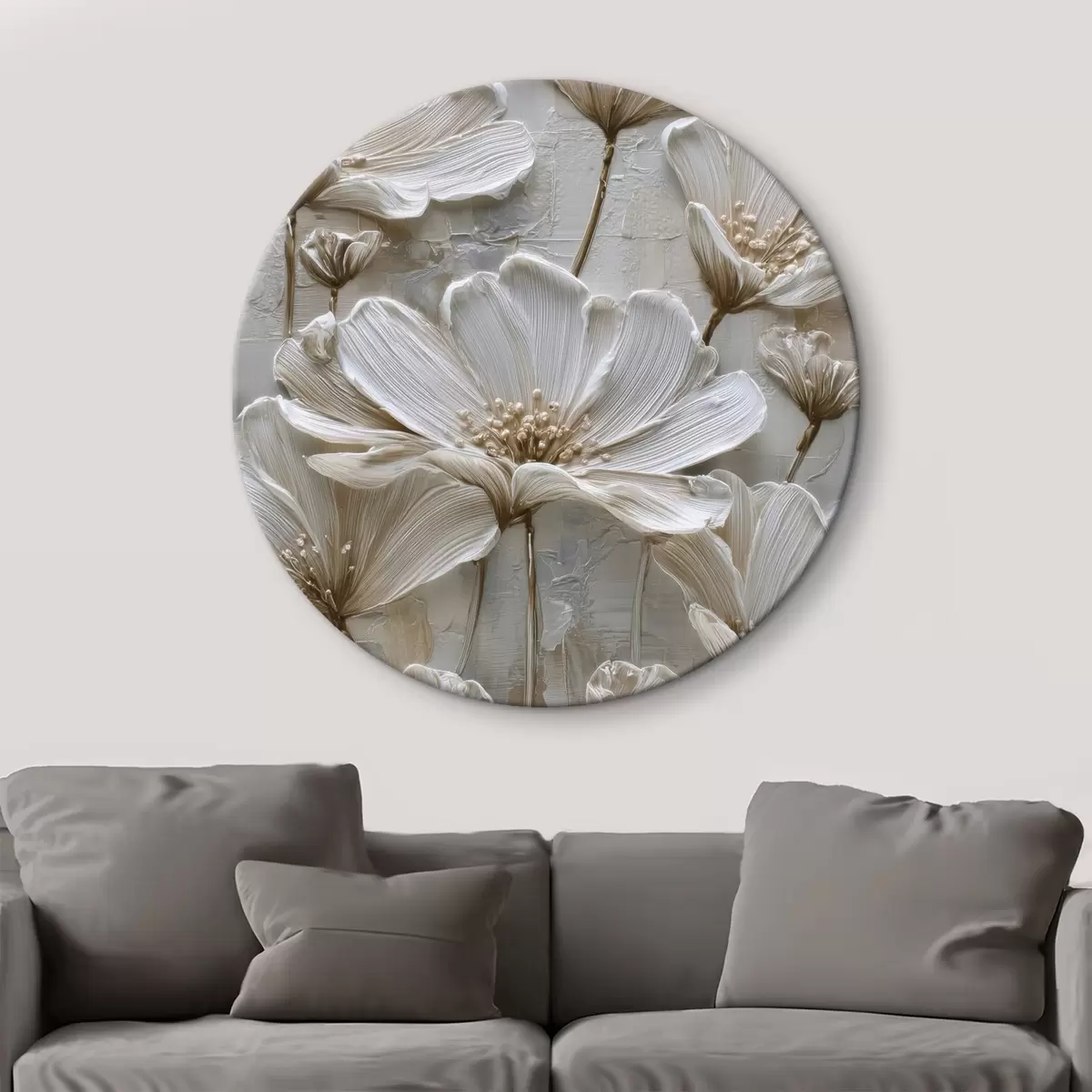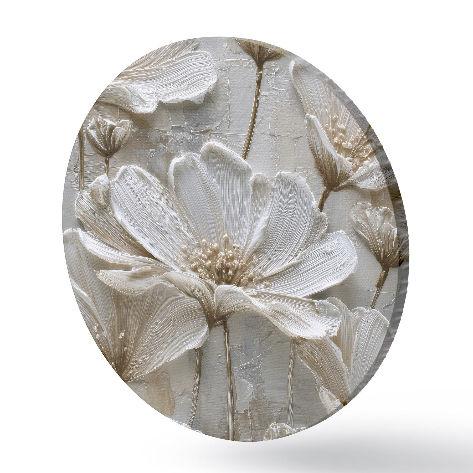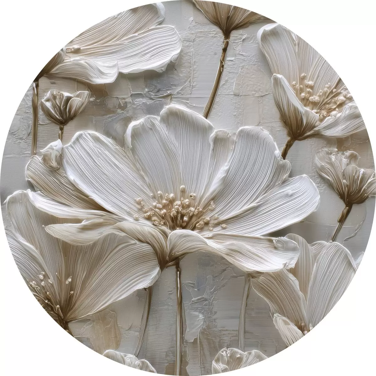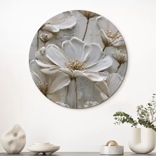 Picturi rotunde flori crem cu stil impasto imitație Nr r45713