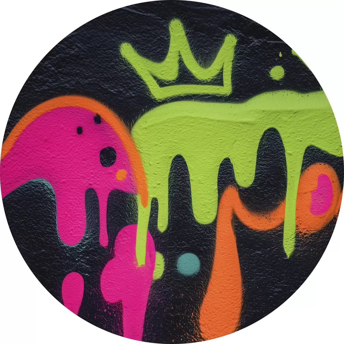 Picturi rotunde graffiti strălucitor pe fundal întunecat Nr r45716