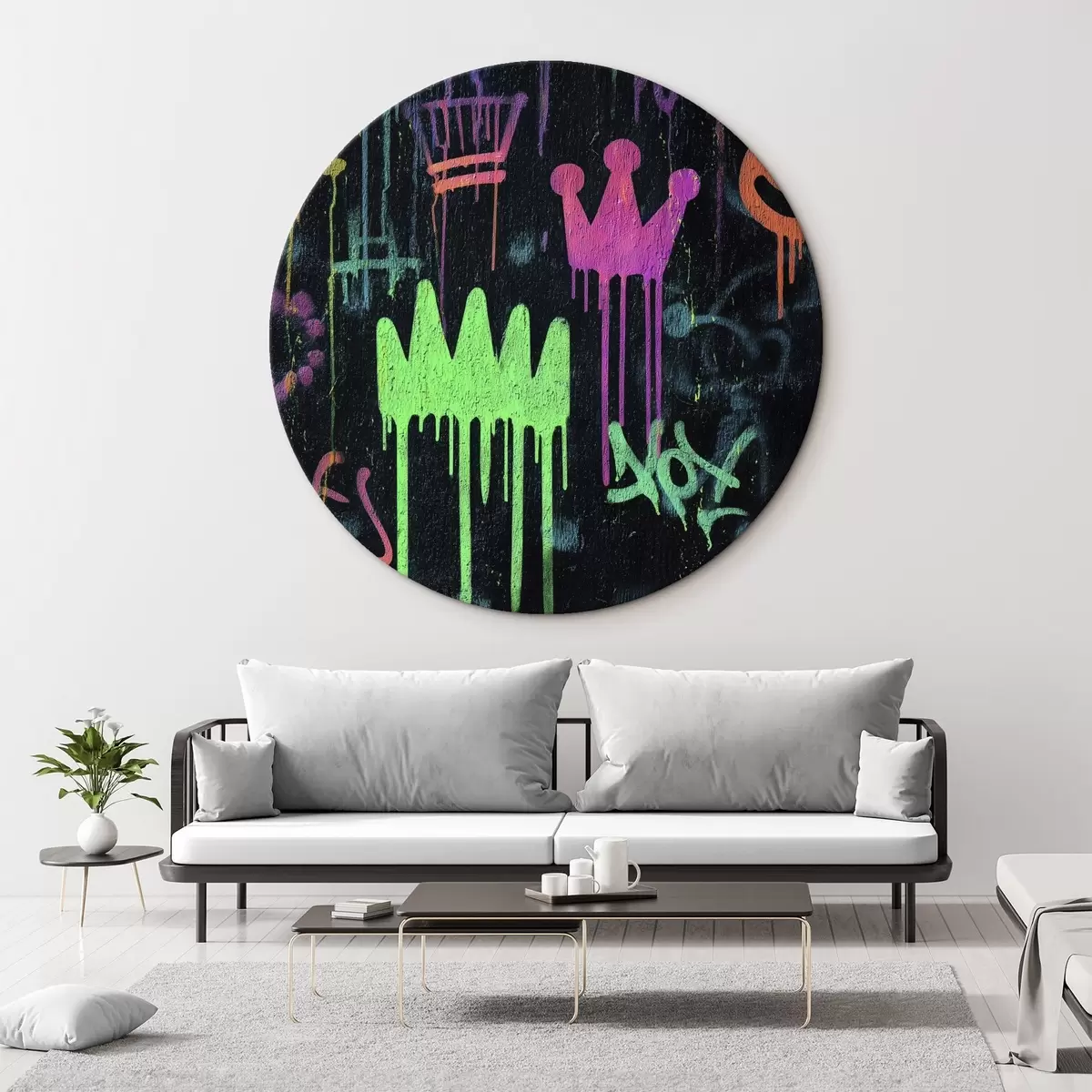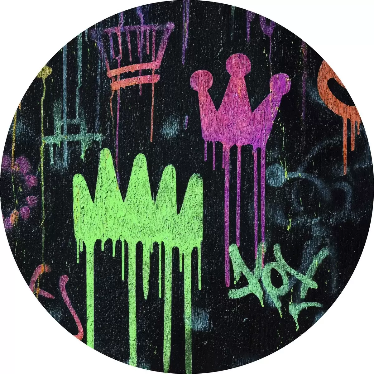 Picturi rotunde graffiti strălucitor pe fundal întunecat Nr r45718