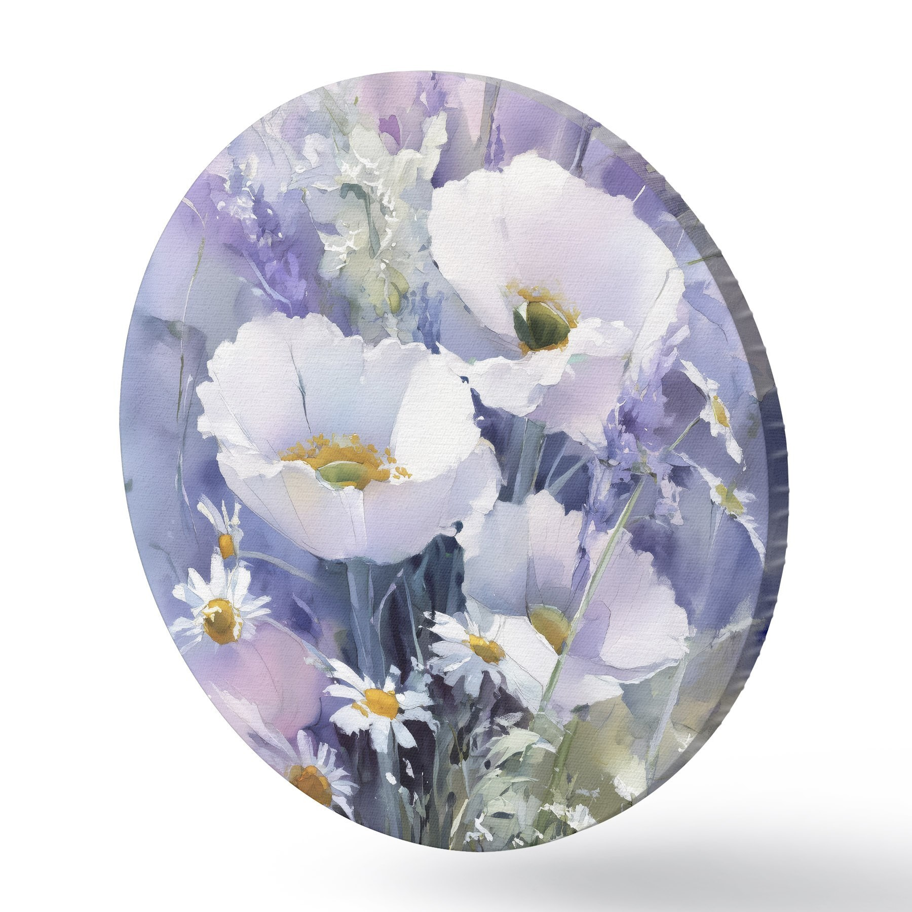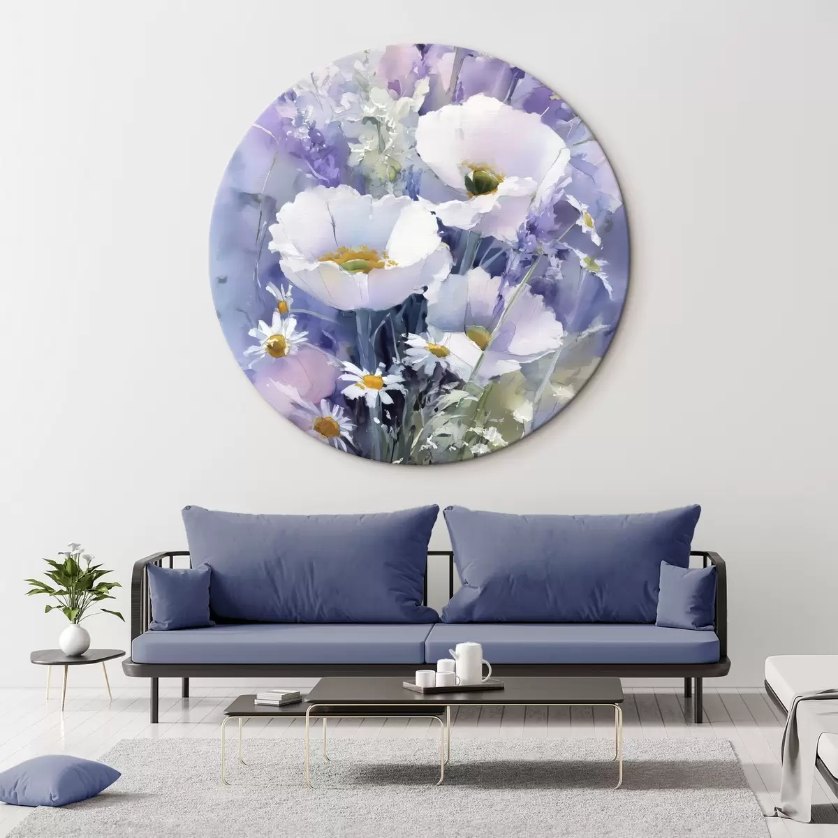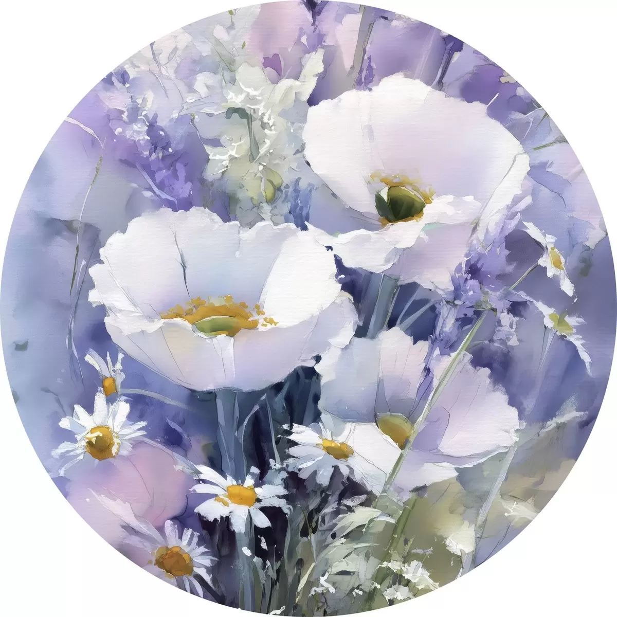 Picturi rotunde buchet în acuarelă în tonuri de liliac și alb r45720