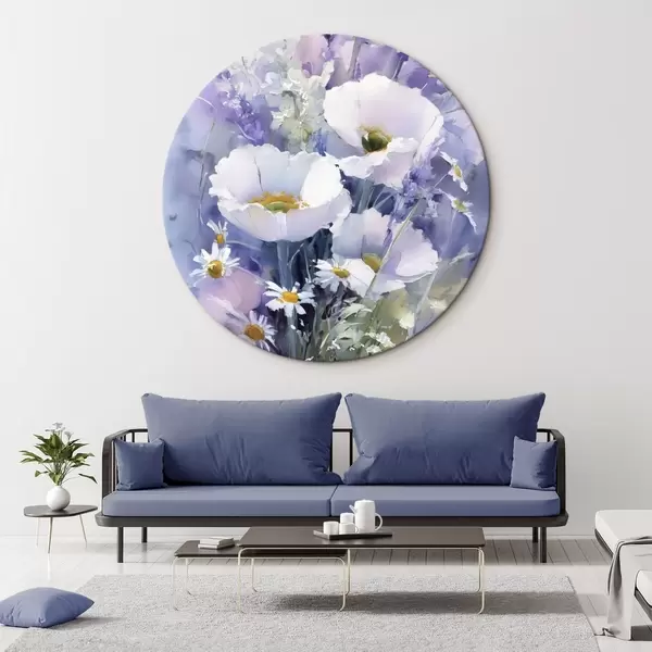 Picturi rotunde buchet în acuarelă în tonuri de liliac și alb Nr r45720