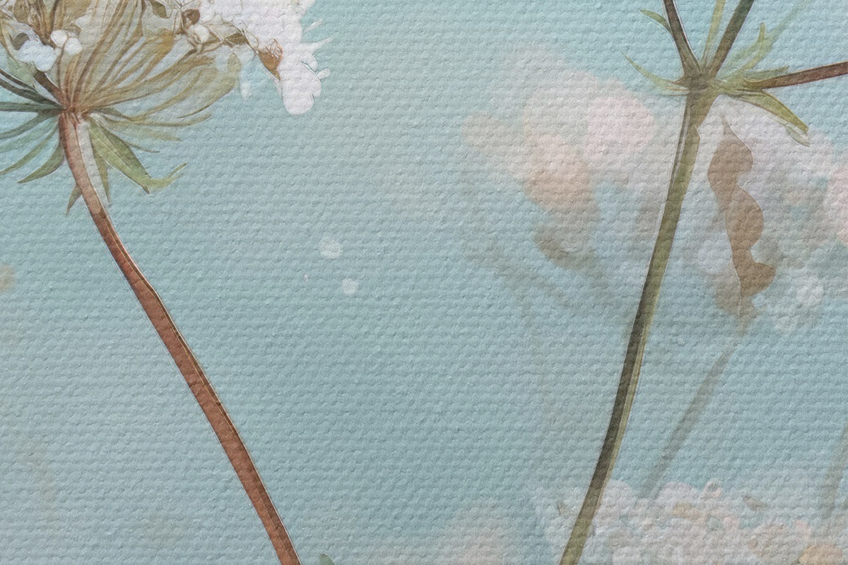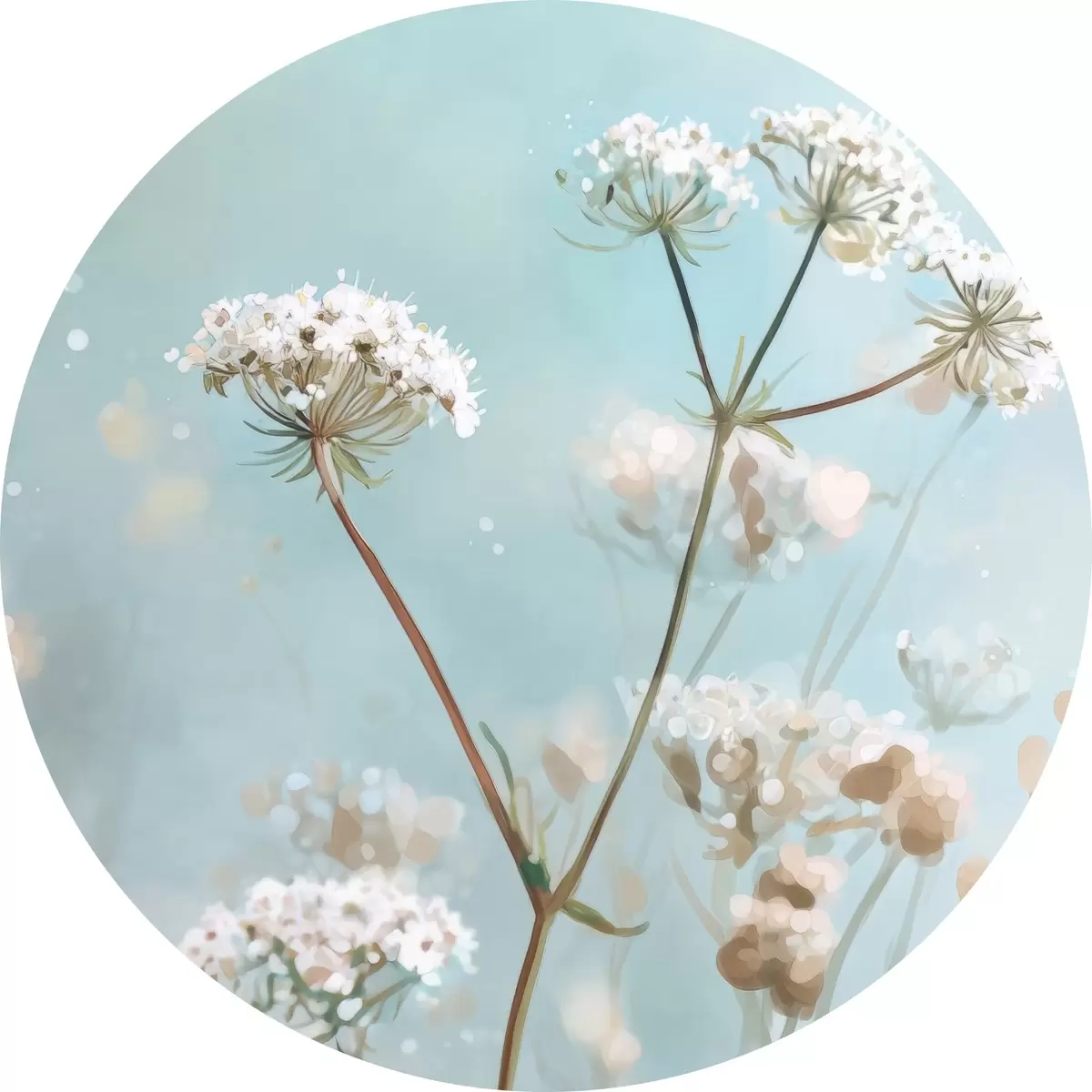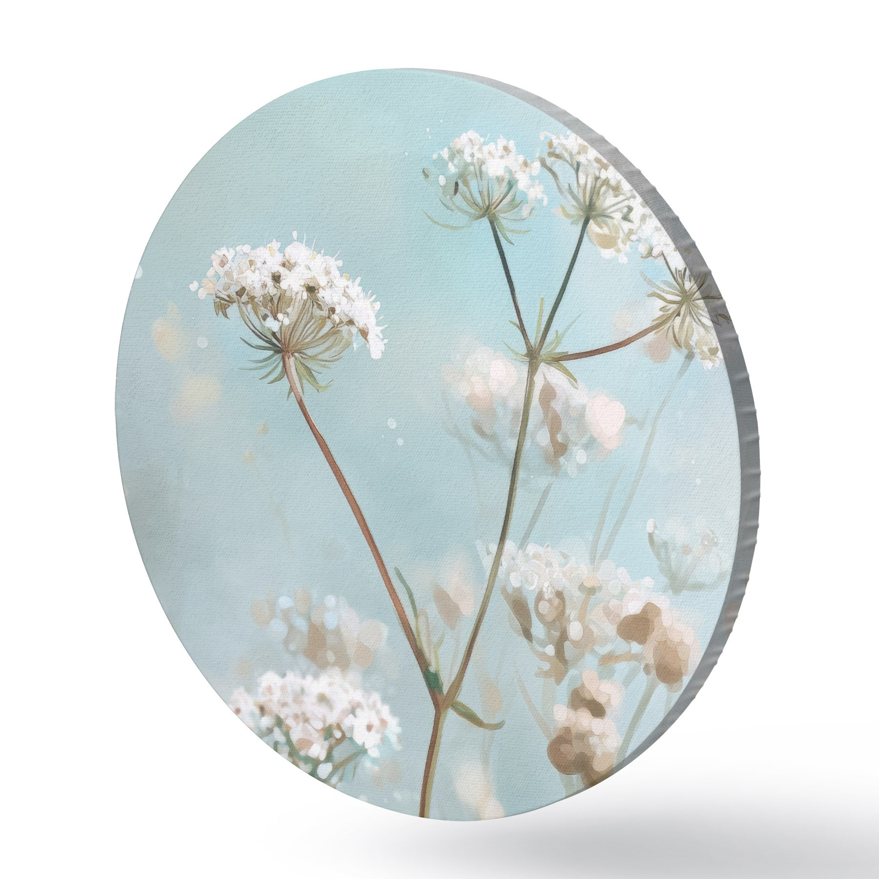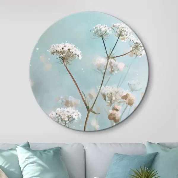 Picturi rotunde Flori Queen Anne's Lace în stil acuarelă pe fundal albastru Nr r45722
