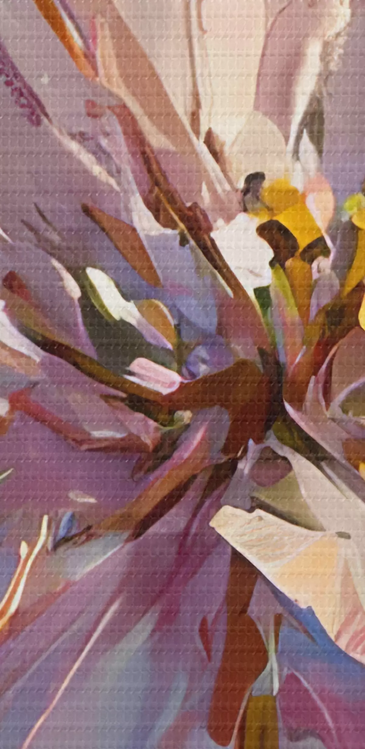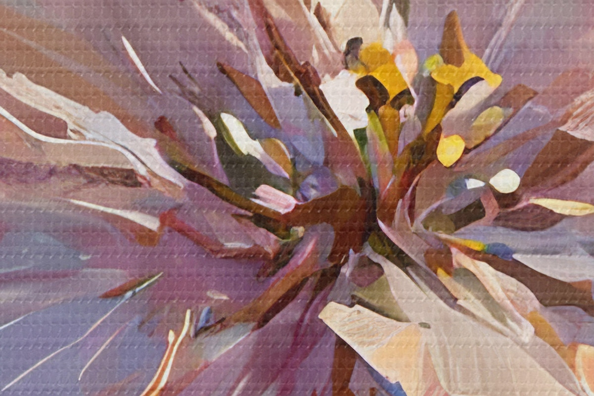 Țesătura fină a firelor de pe această pânză seamănă cu suprafața pânzelor artiștilor profesioniști.