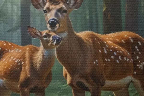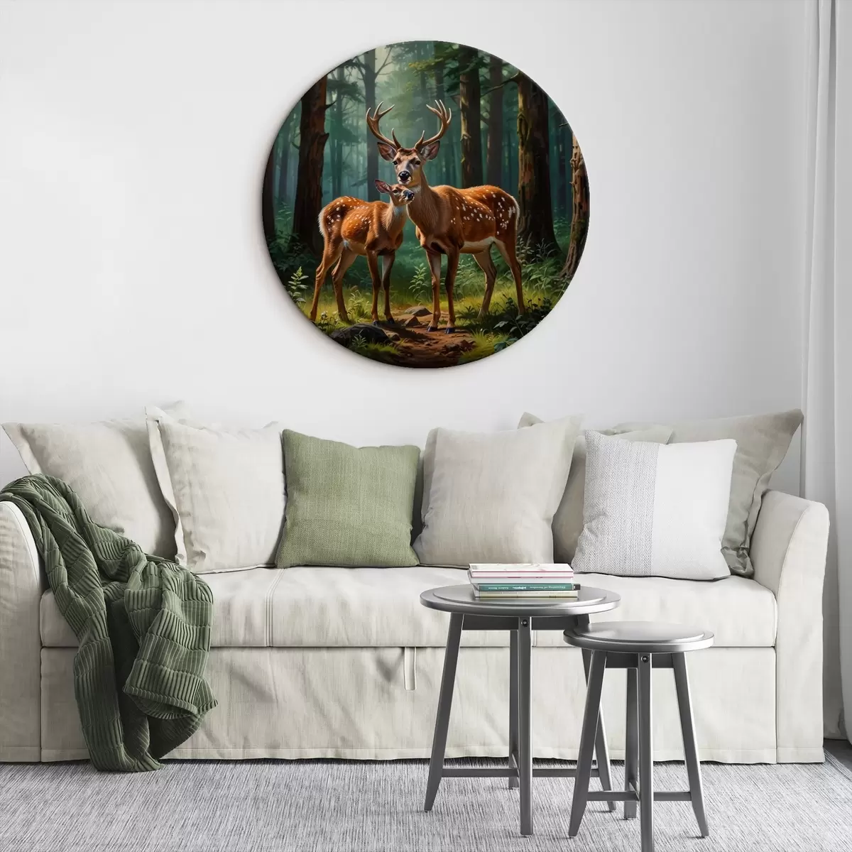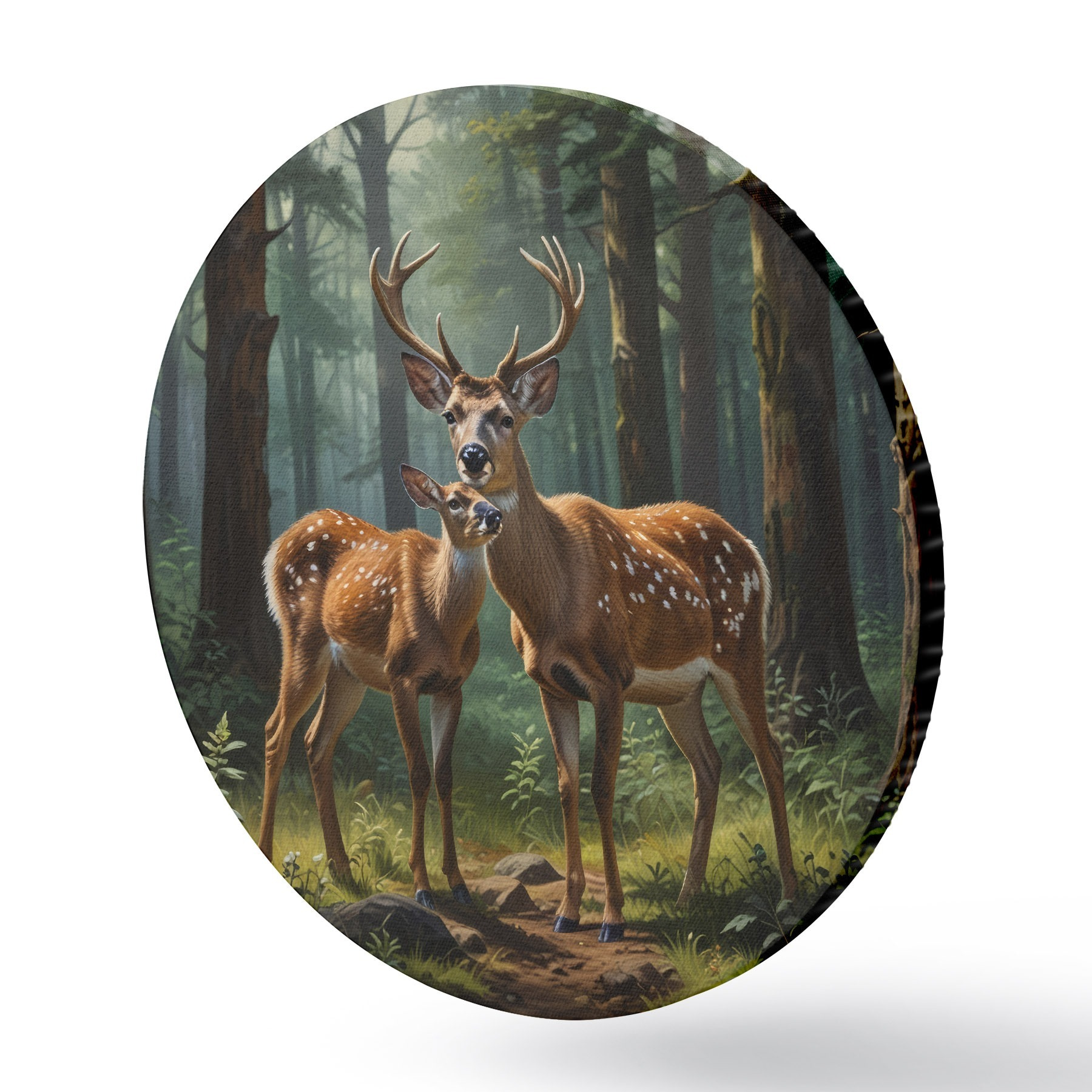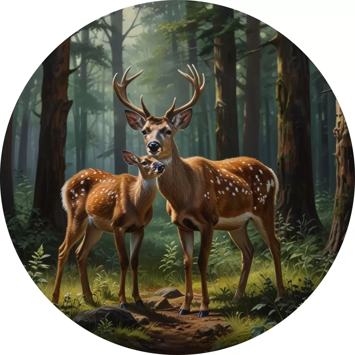 Picturi rotunde cerb cu pui în pădure Nr r45732