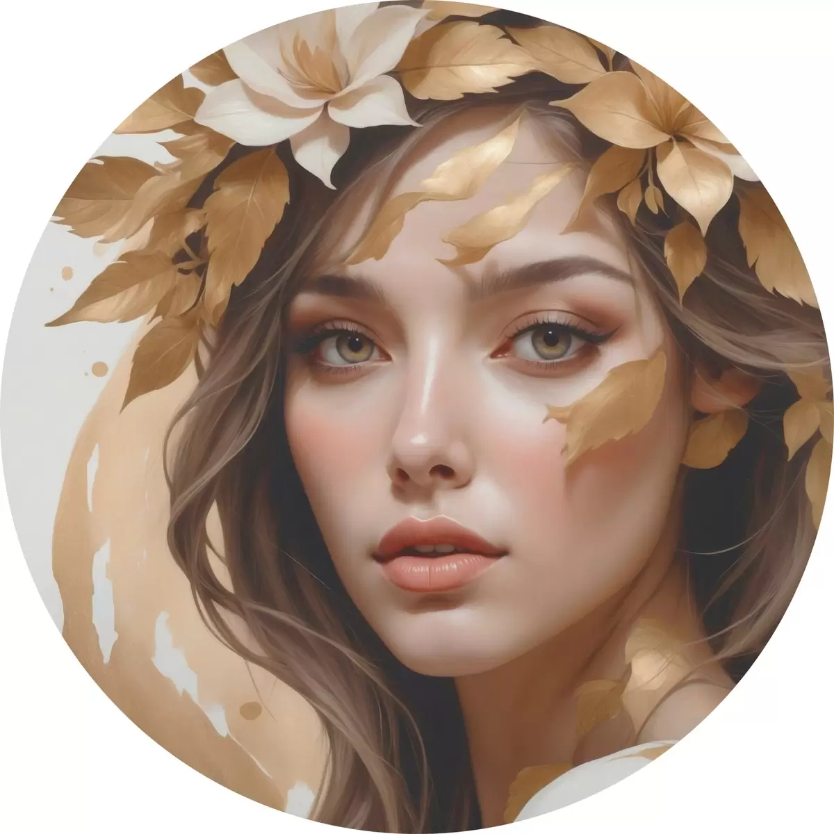 Picturi rotunde O femeie cu frunze în păr r45748