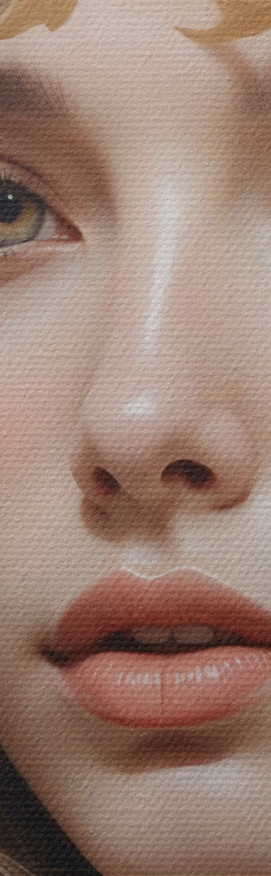 Țesătura fină a firelor de pe această pânză seamănă cu suprafața pânzelor artiștilor profesioniști.