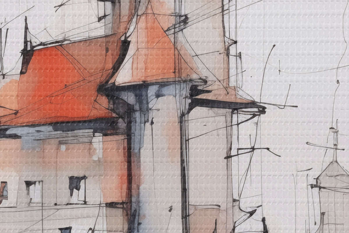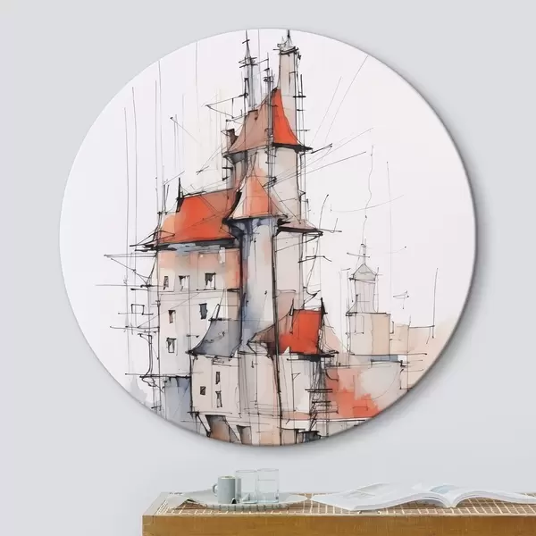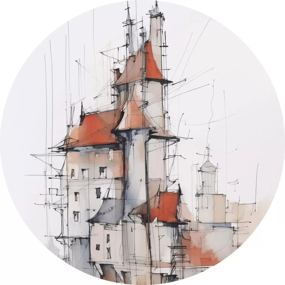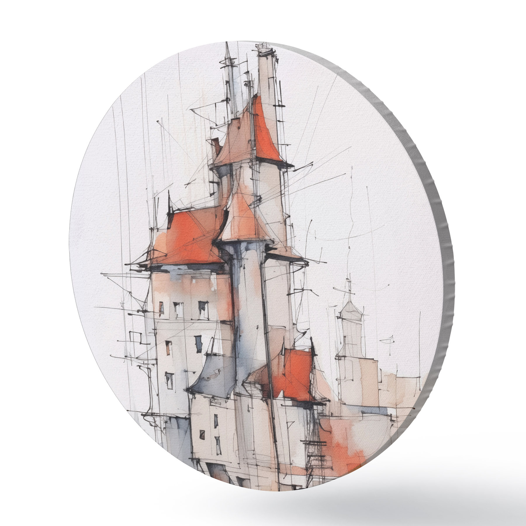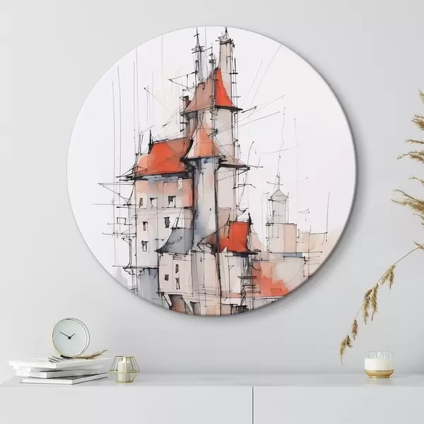 Picturi rotunde Case schiță imitație și acuarelă Nr r45764