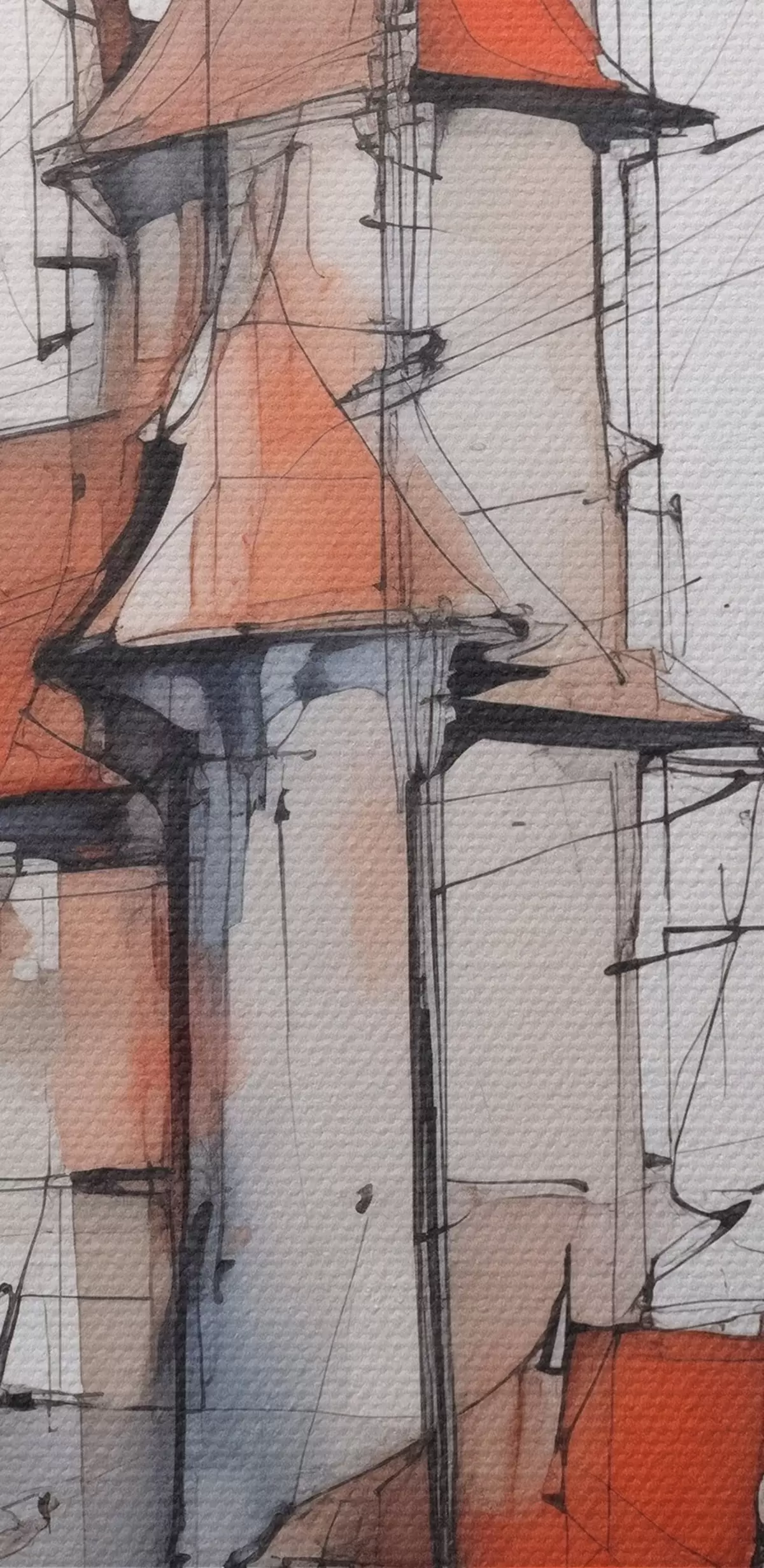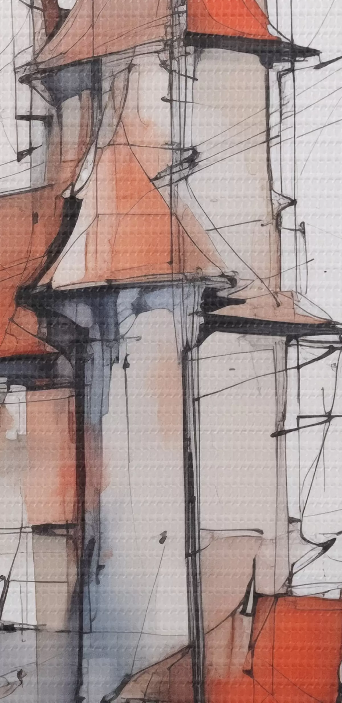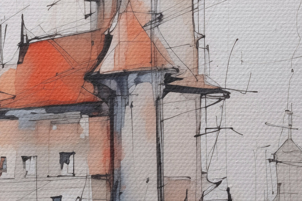 Picturi rotunde Case schiță imitație și acuarelă Nr r45764