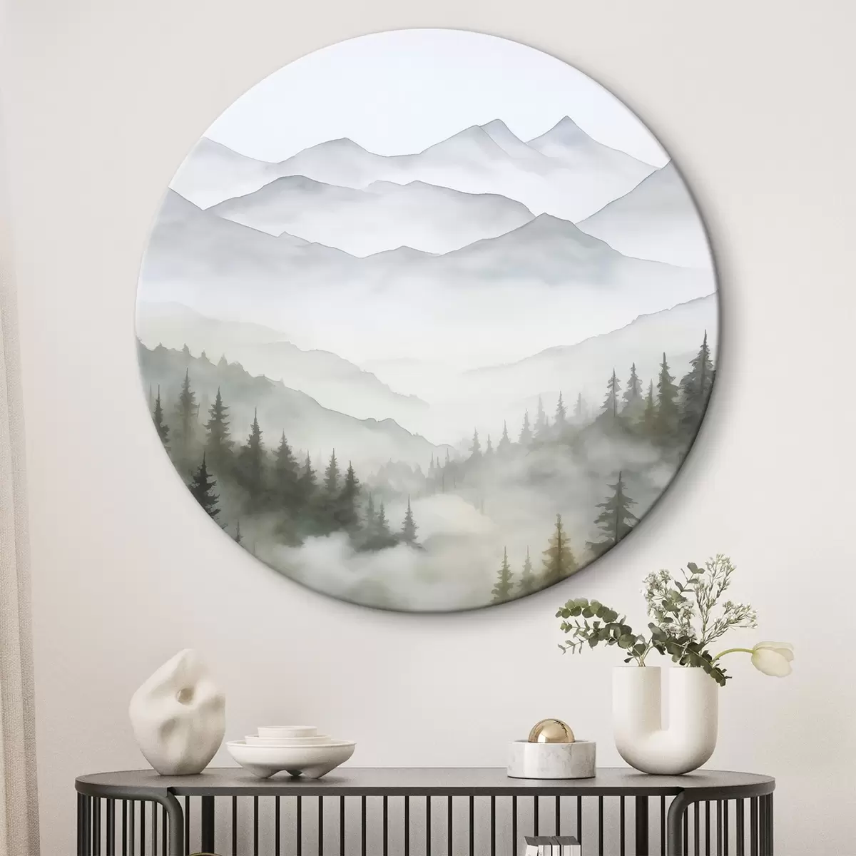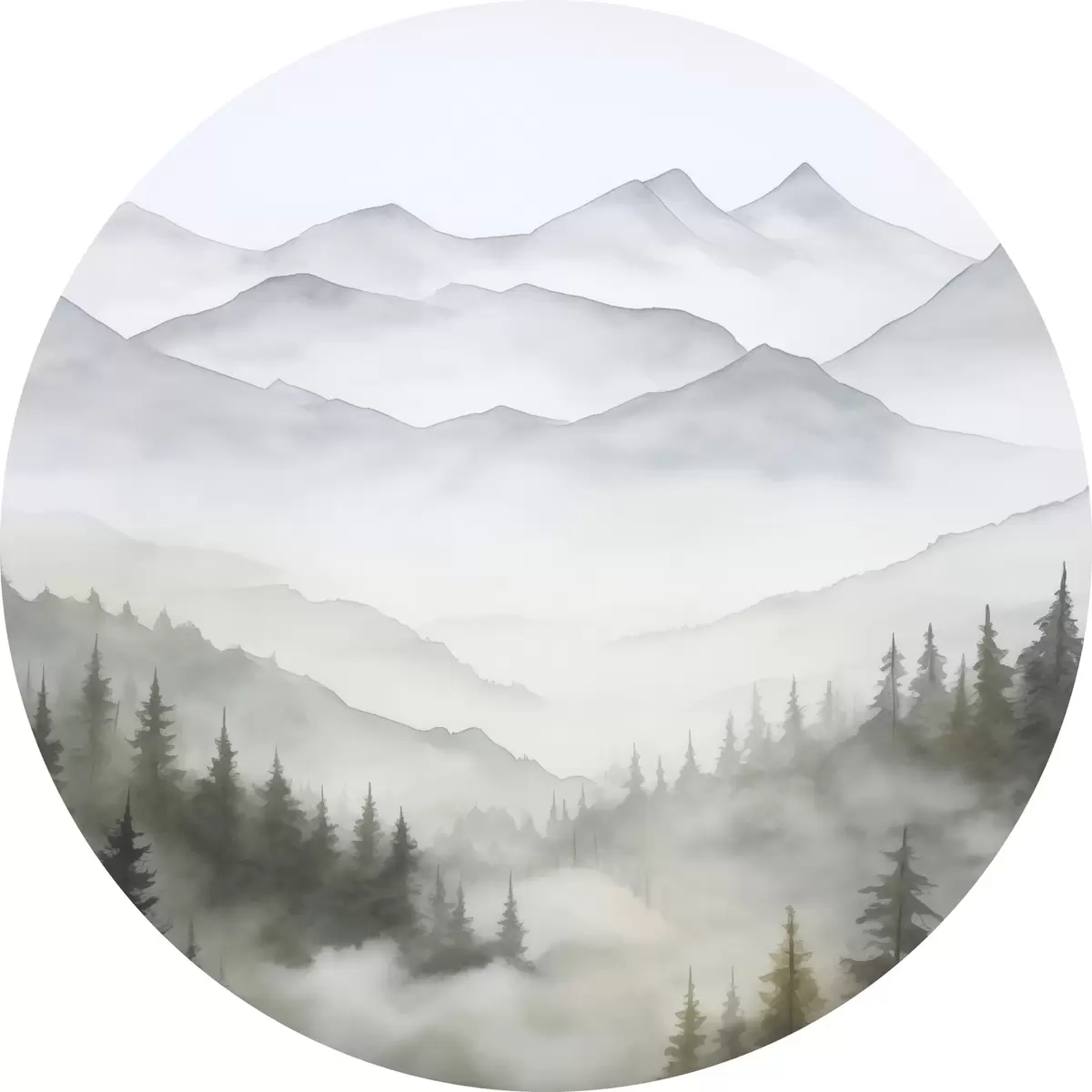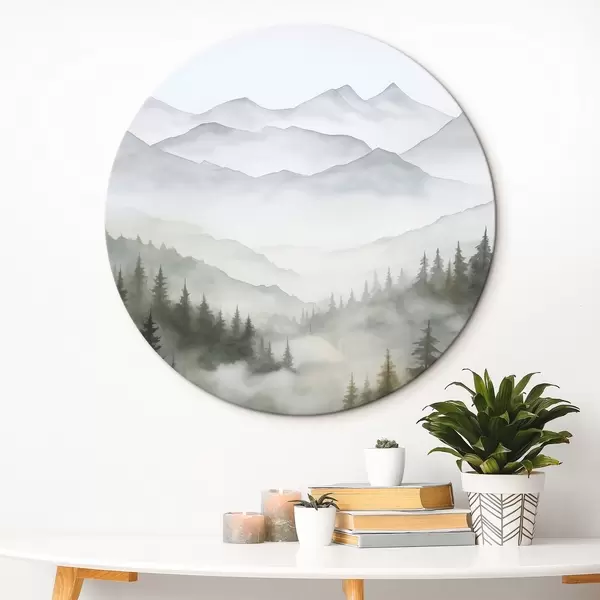 Picturi rotunde Pădure în ceață în fața munților Nr r45774