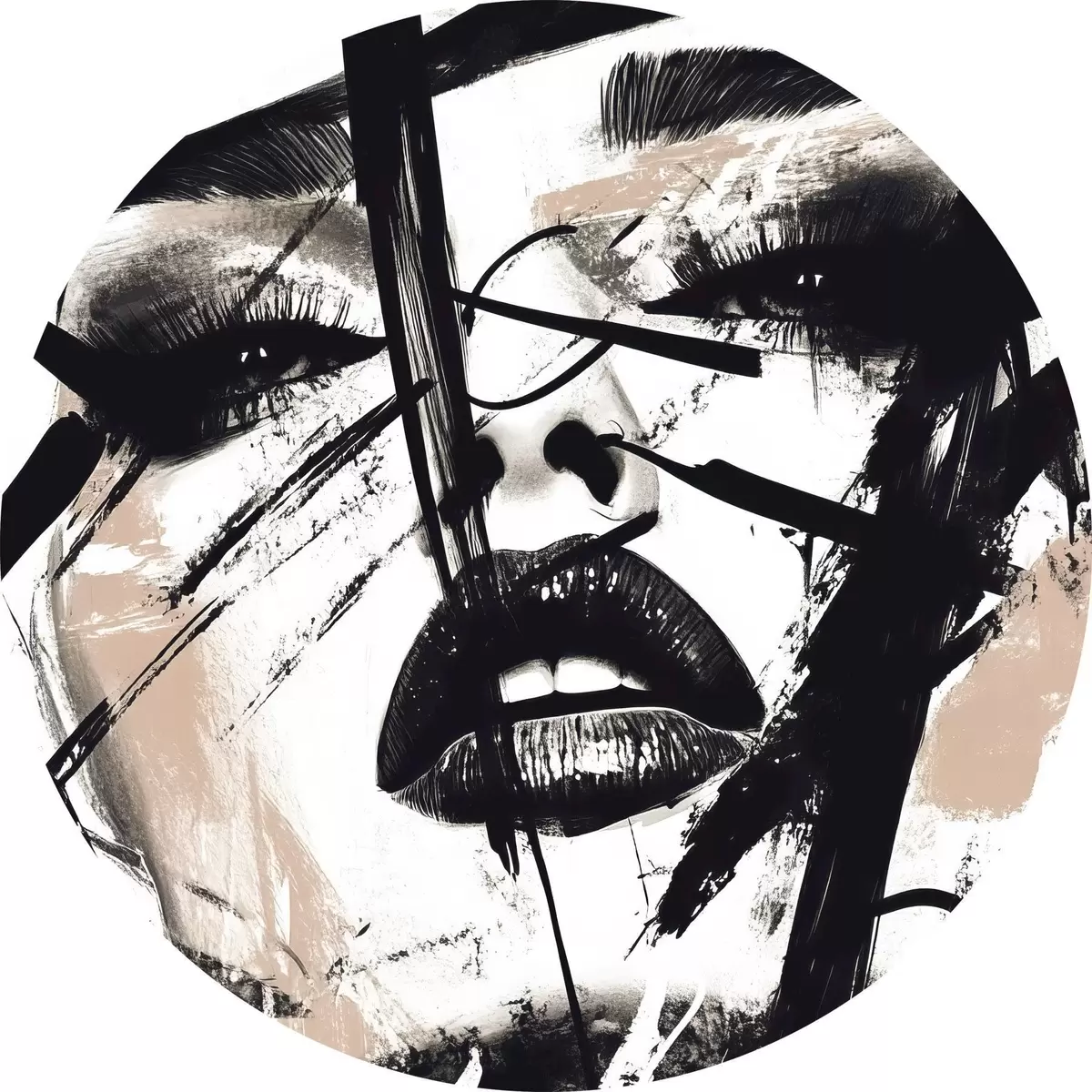 Picturi rotunde Portret abstract în stil graffiti al unei femei r45777