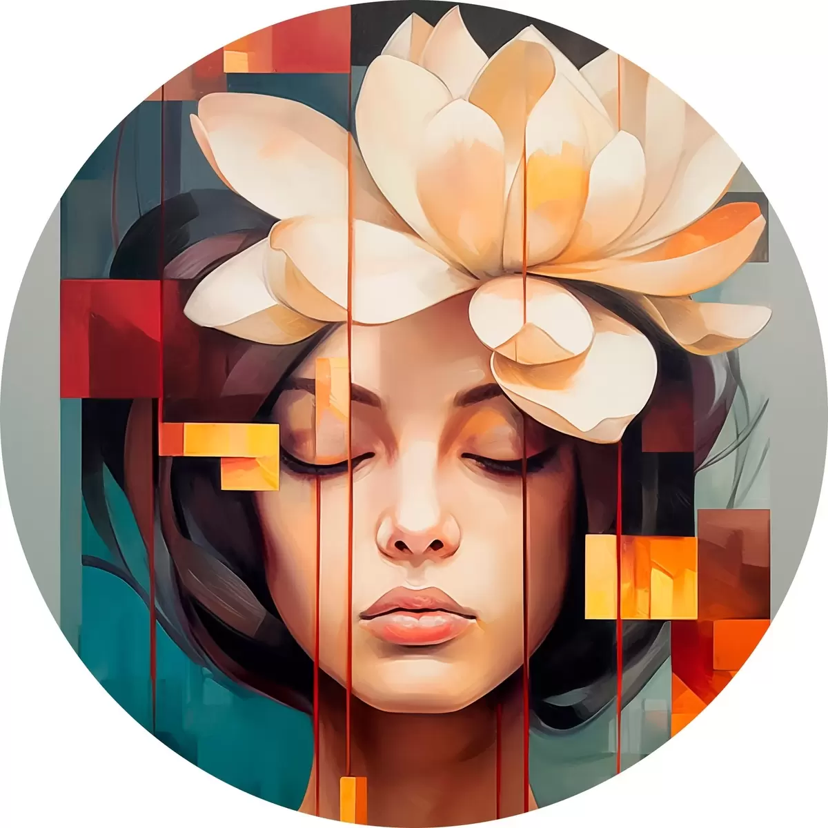 Picturi rotunde Femeie cu o floare Nr r45796
