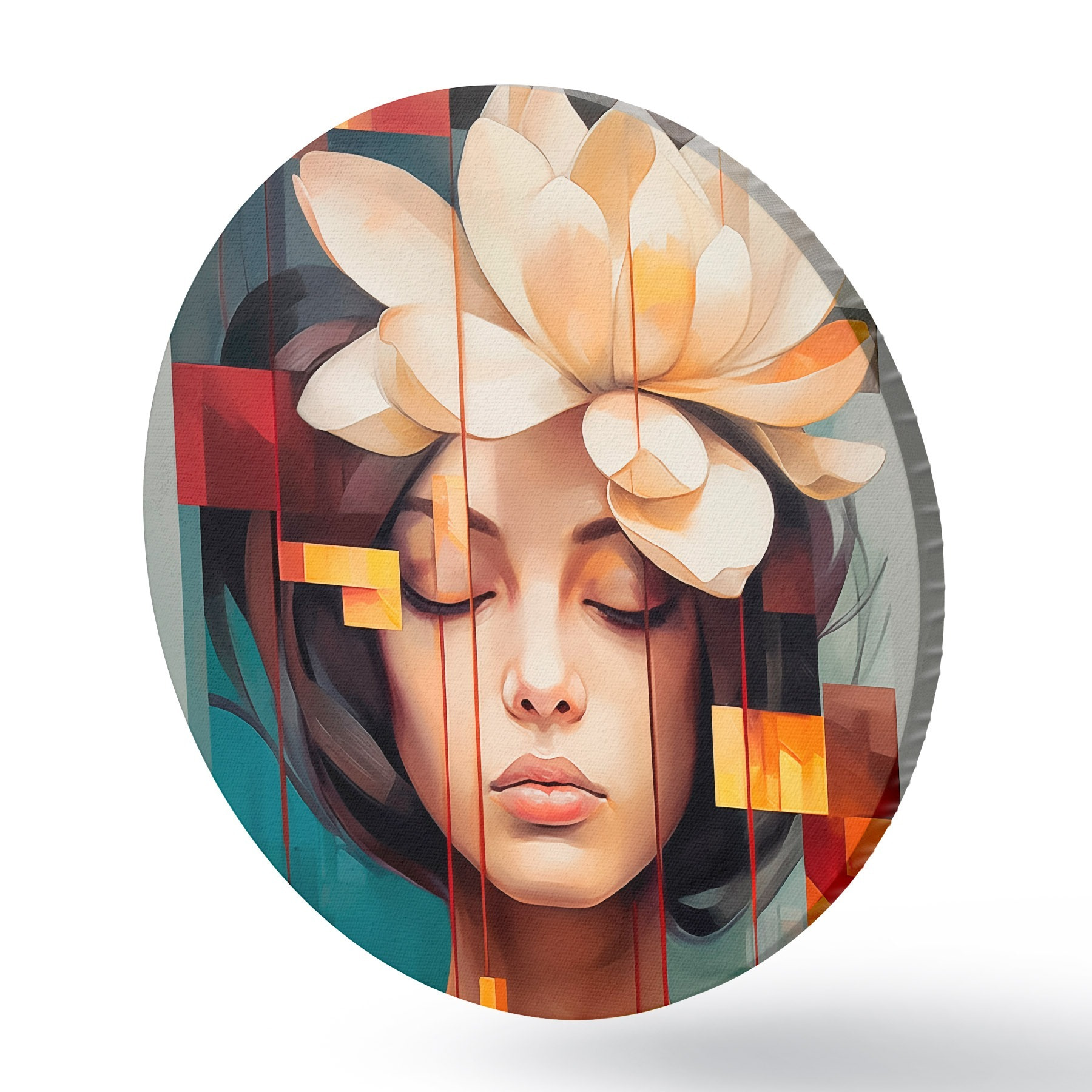 Picturi rotunde Femeie cu o floare r45796