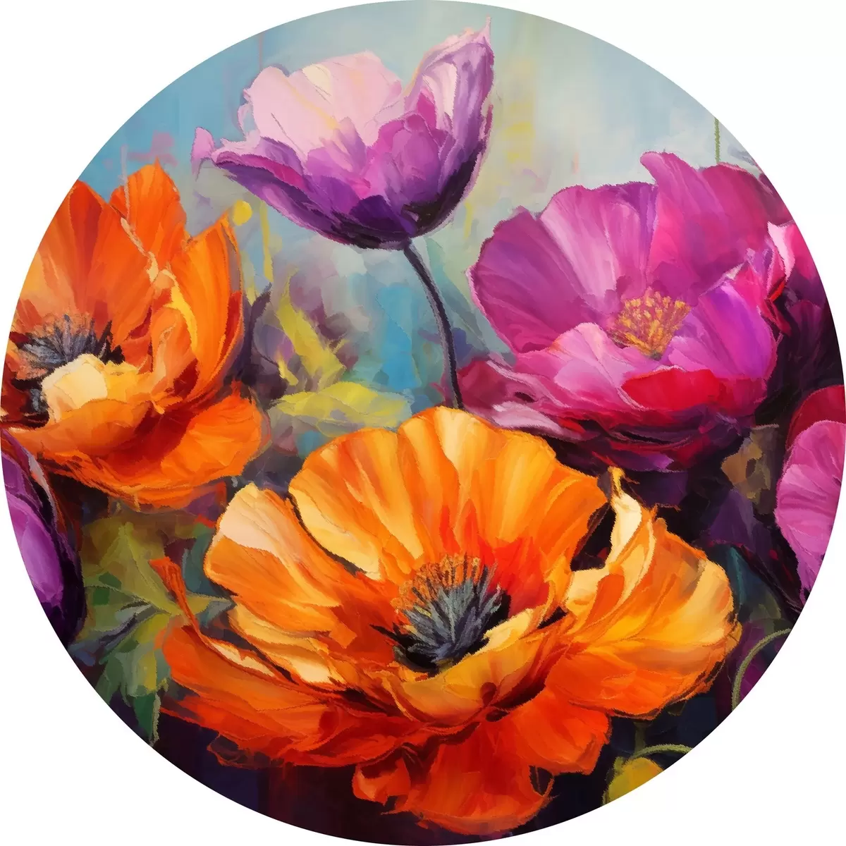 Picturi rotunde Maci strălucitori în nuanțe de violet și portocaliu Nr r45804