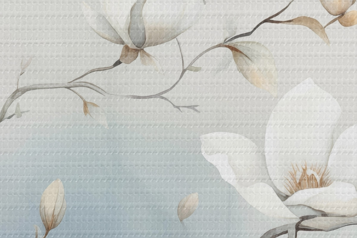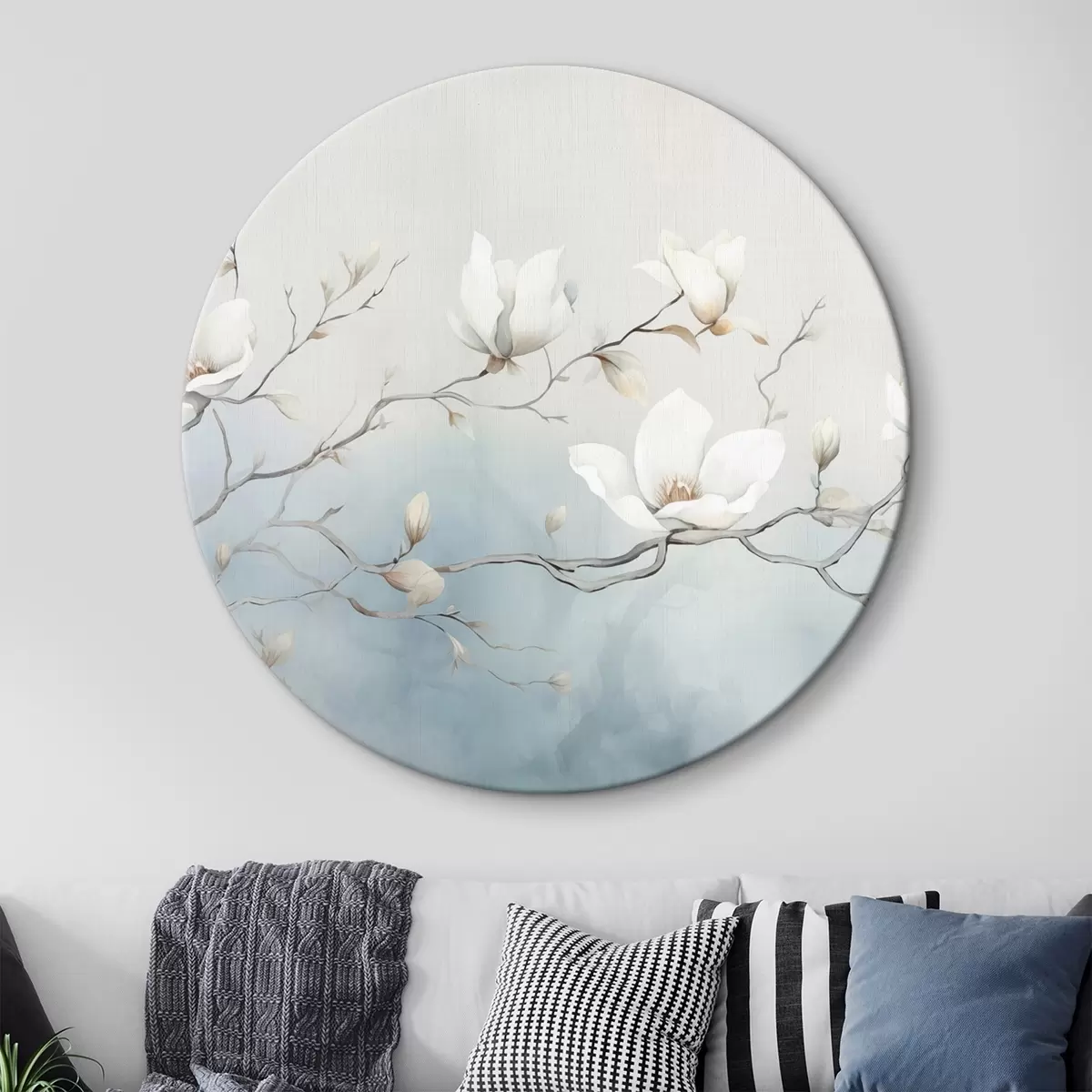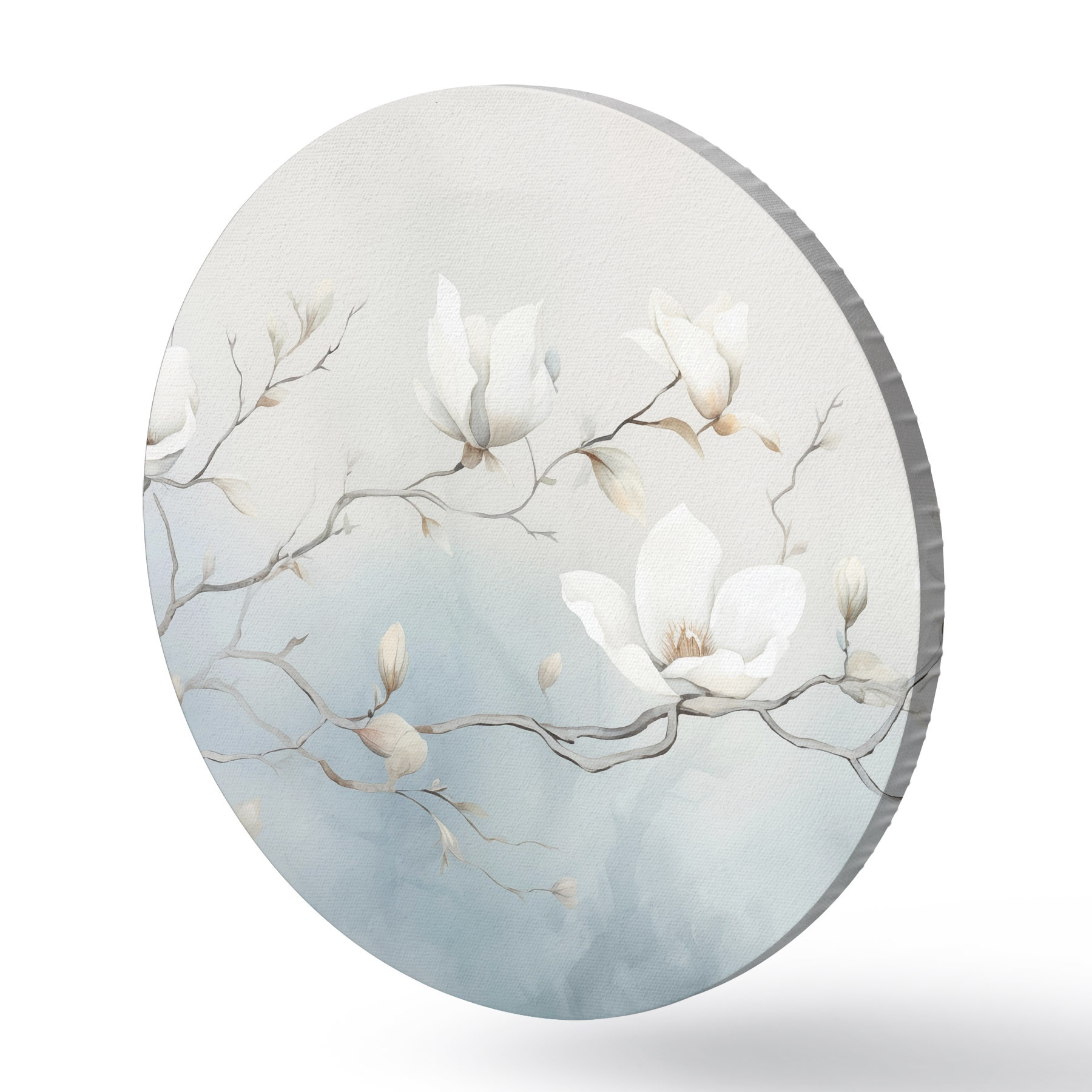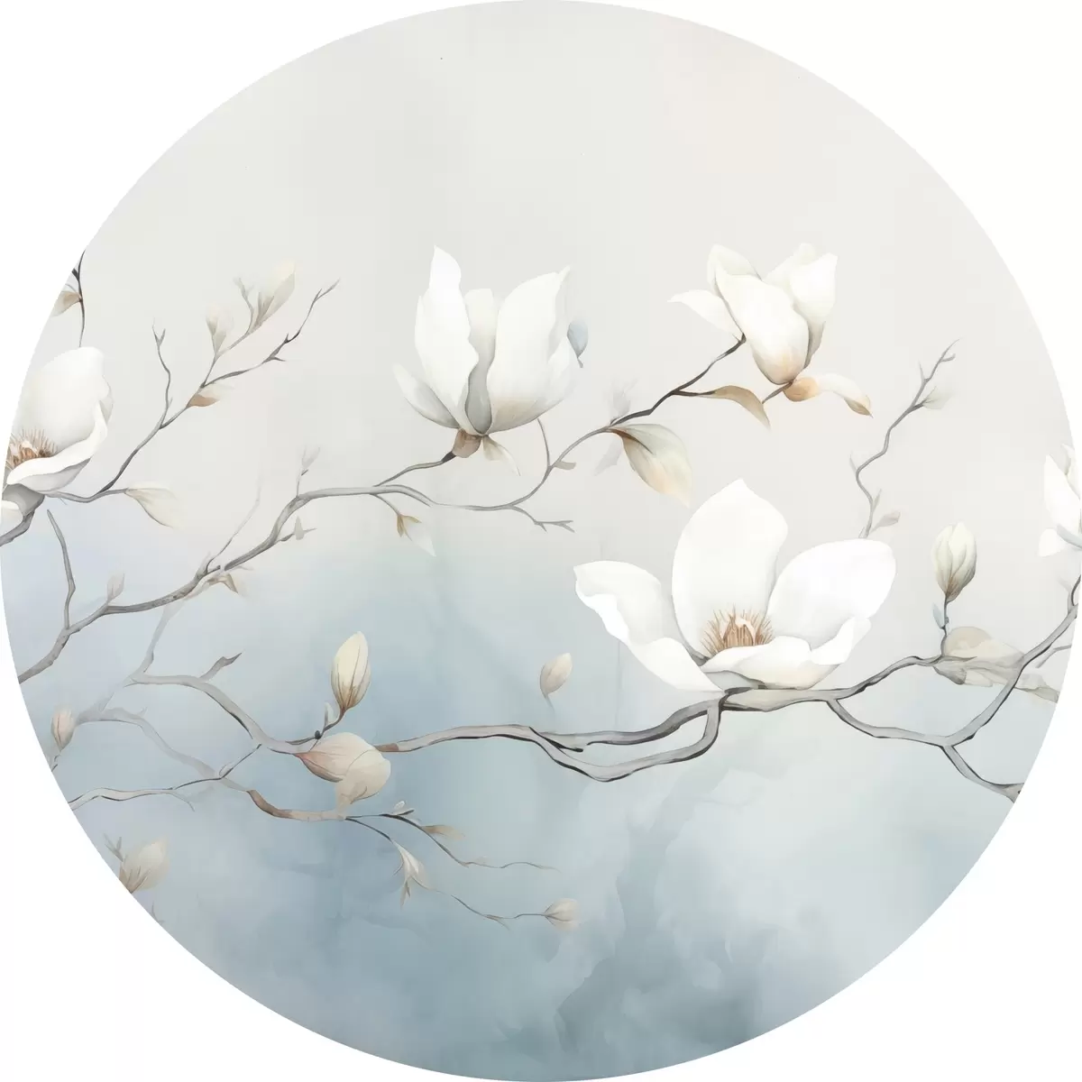 Picturi rotunde Ramuri de magnolie cu flori albe pe un fundal delicat Nr r45806