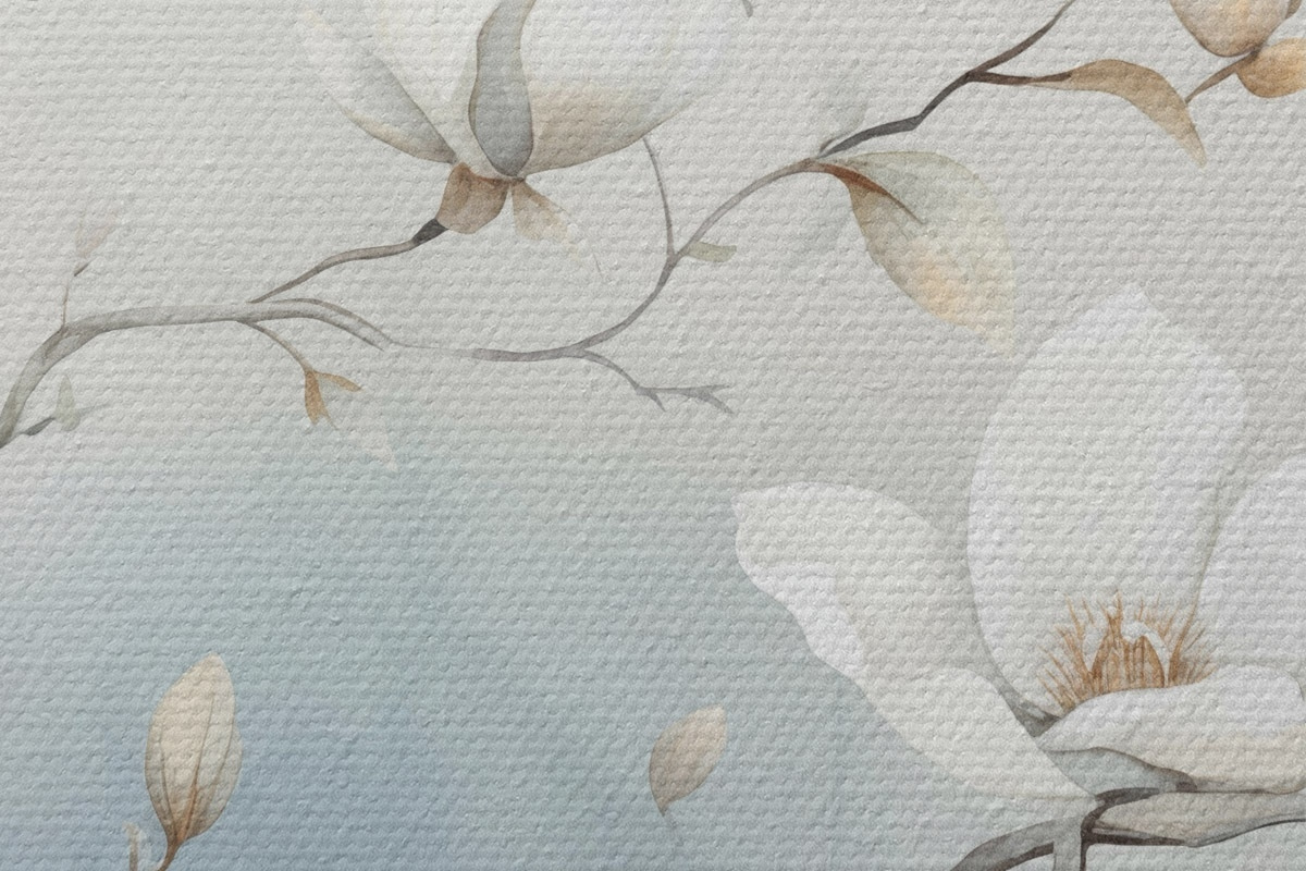 Picturi rotunde Ramuri de magnolie cu flori albe pe un fundal delicat r45806