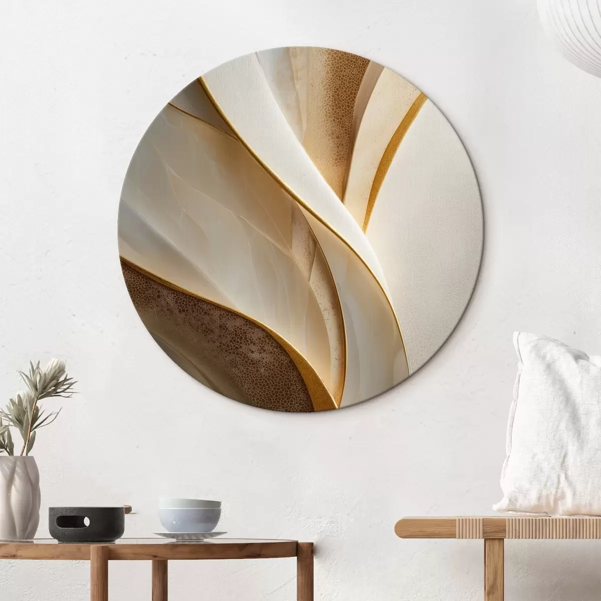 Picturi rotunde Curbe abstracte cu accente galben-portocaliu și bej Nr r45807