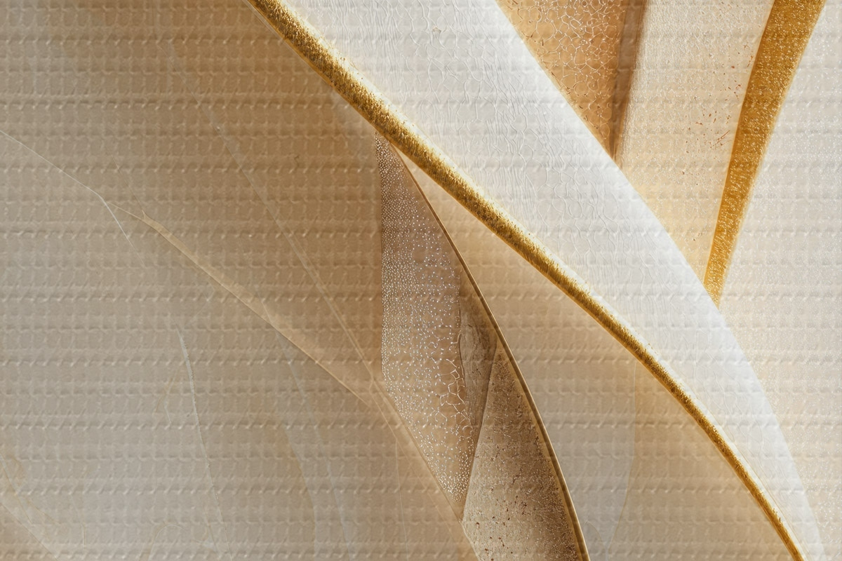 Picturi rotunde Curbe abstracte cu accente galben-portocaliu și bej r45807