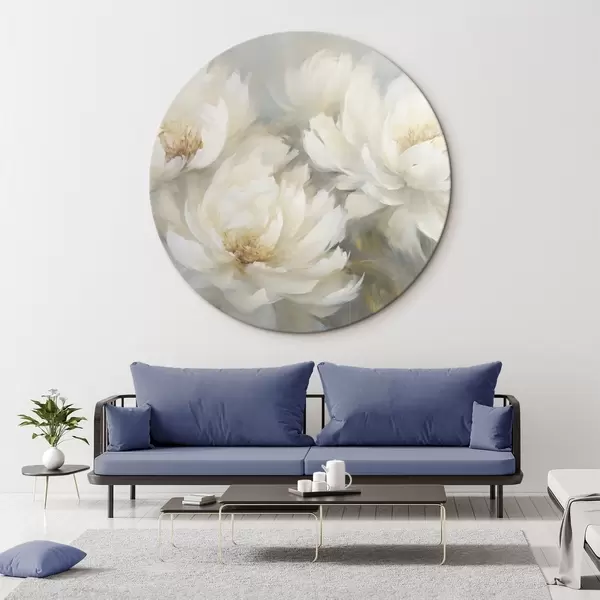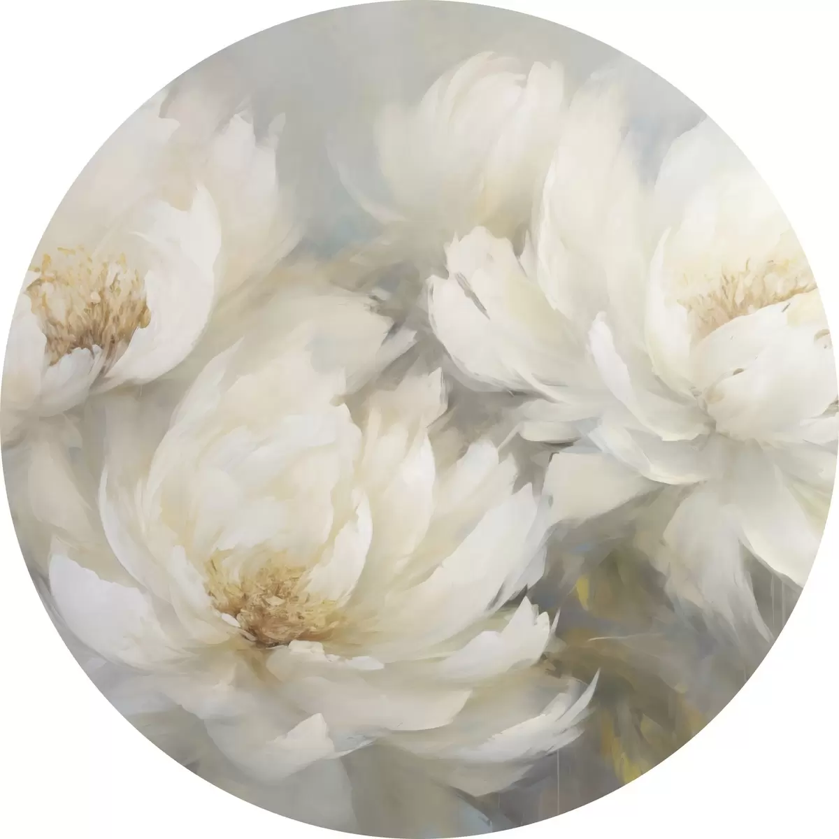 Picturi rotunde Trei bujori albi luxurianți pe un fundal delicat r45808